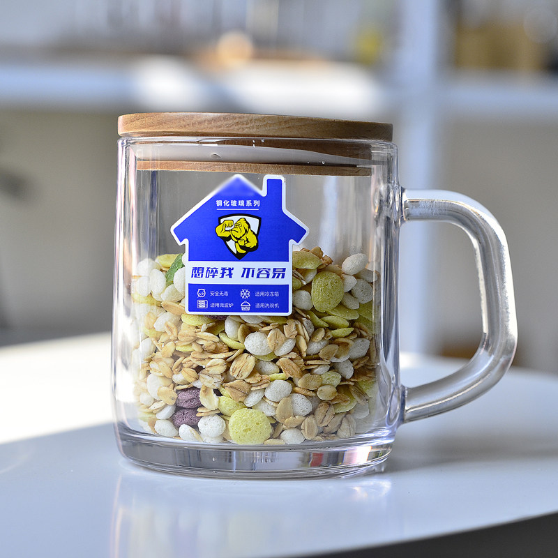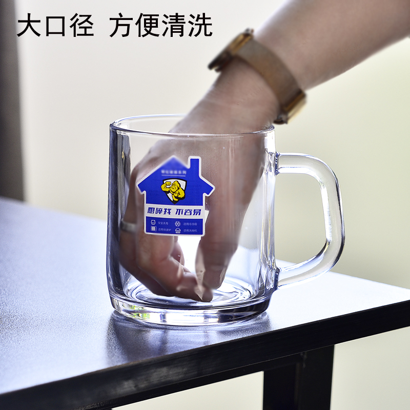 带把钢化玻璃早餐办公杯耐热泡茶大容量扎啤酒牛奶马克水杯子带盖