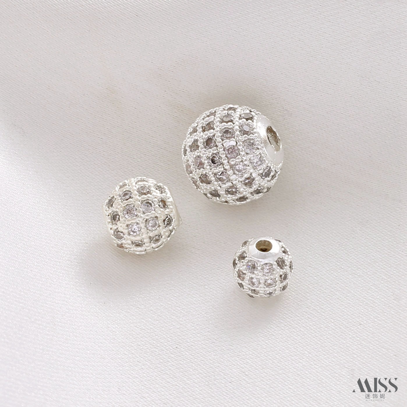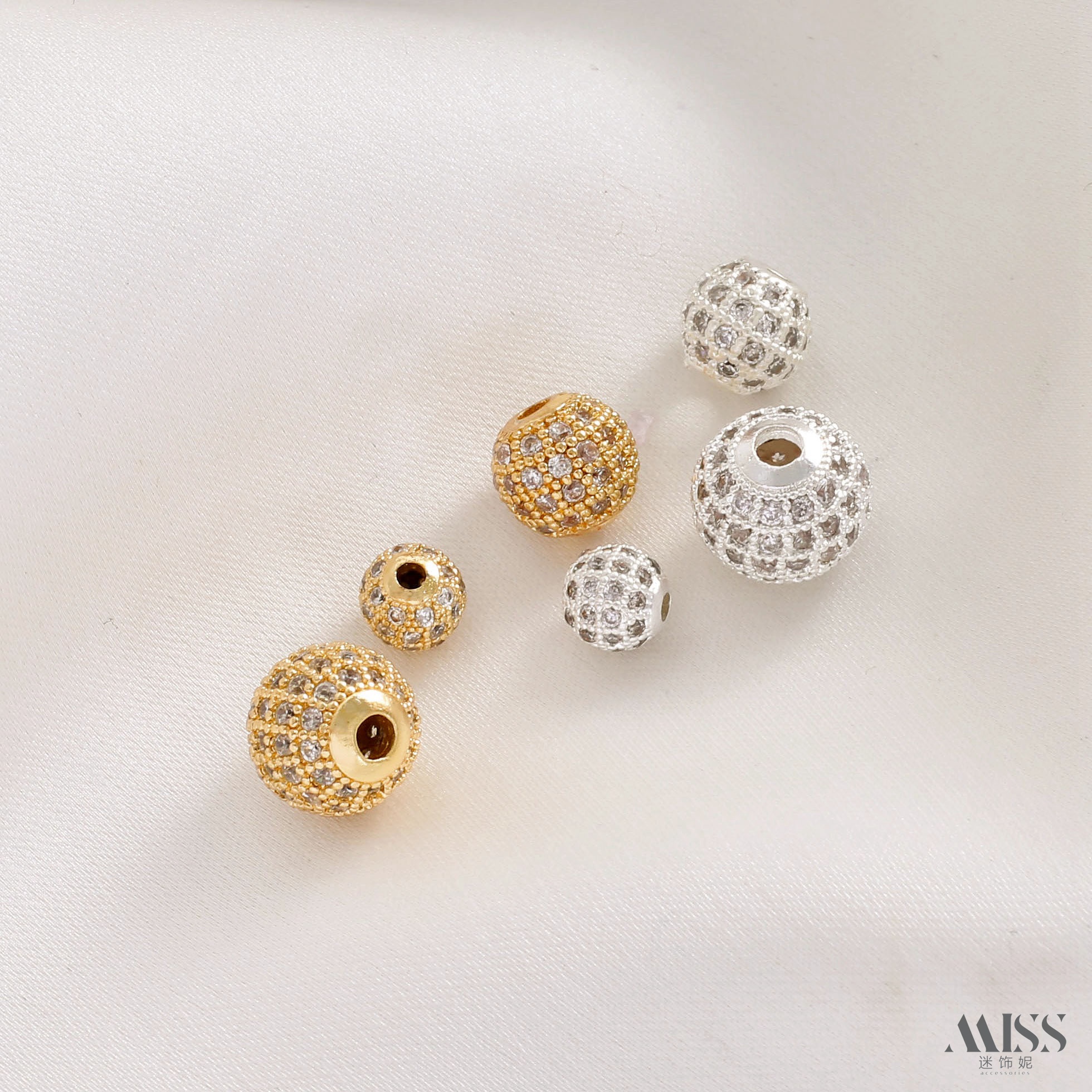 14K包金保色银色满镶锆石圆珠钻球隔珠diy手工手链项链串珠饰配件