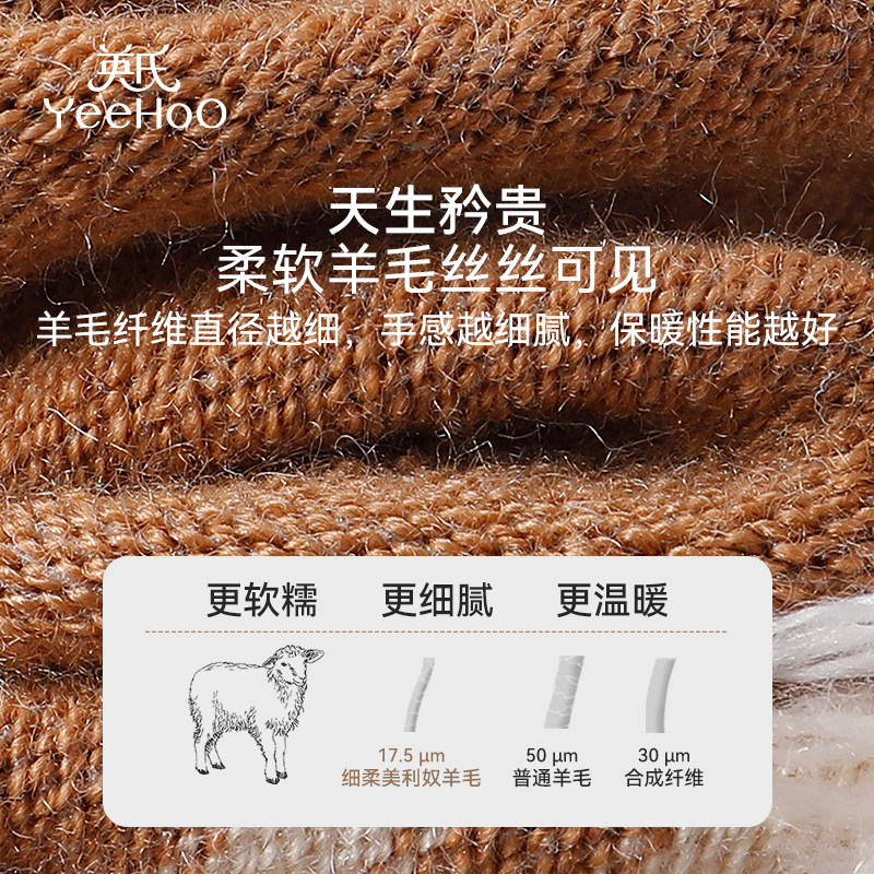 英氏儿童中筒羊毛袜秋冬加厚保暖