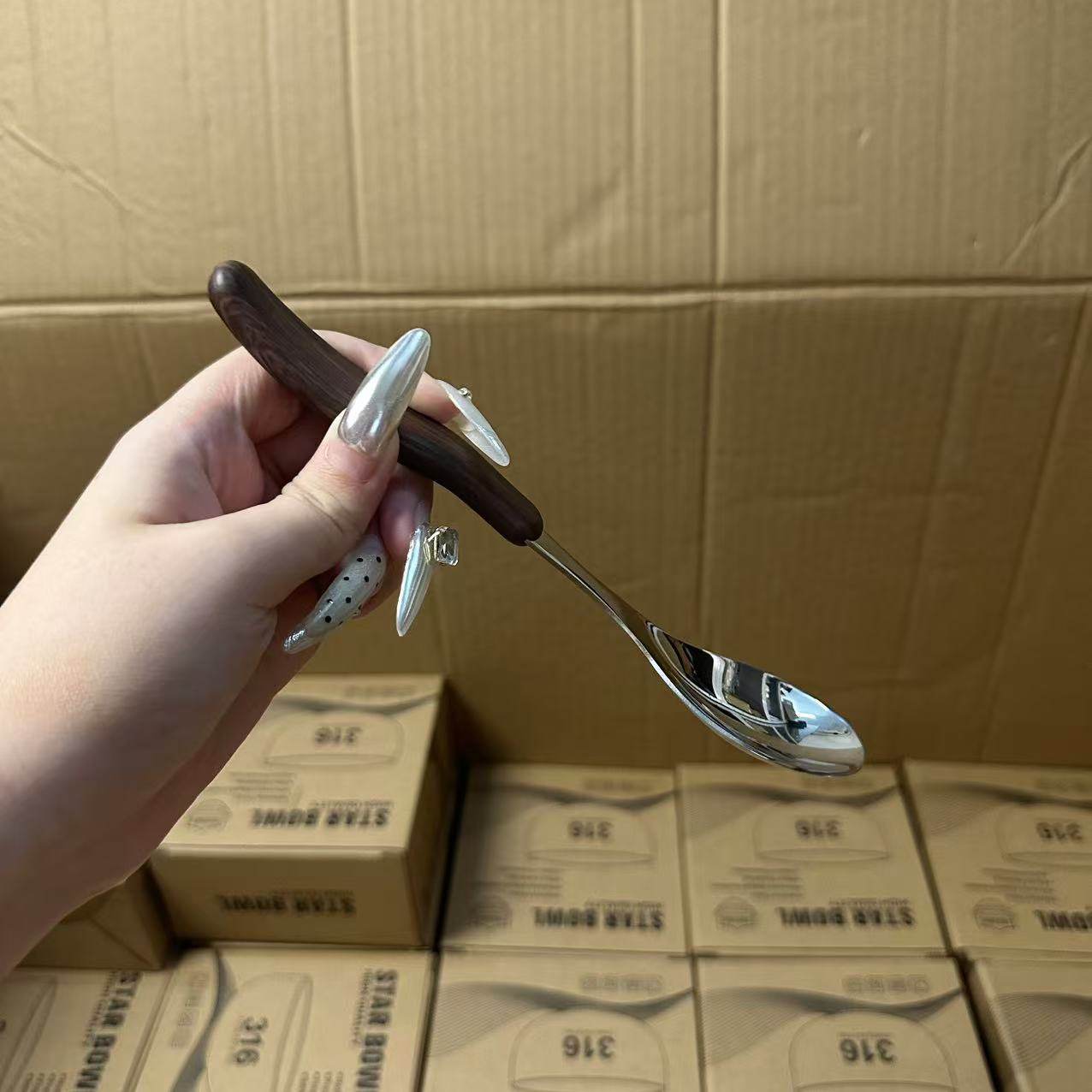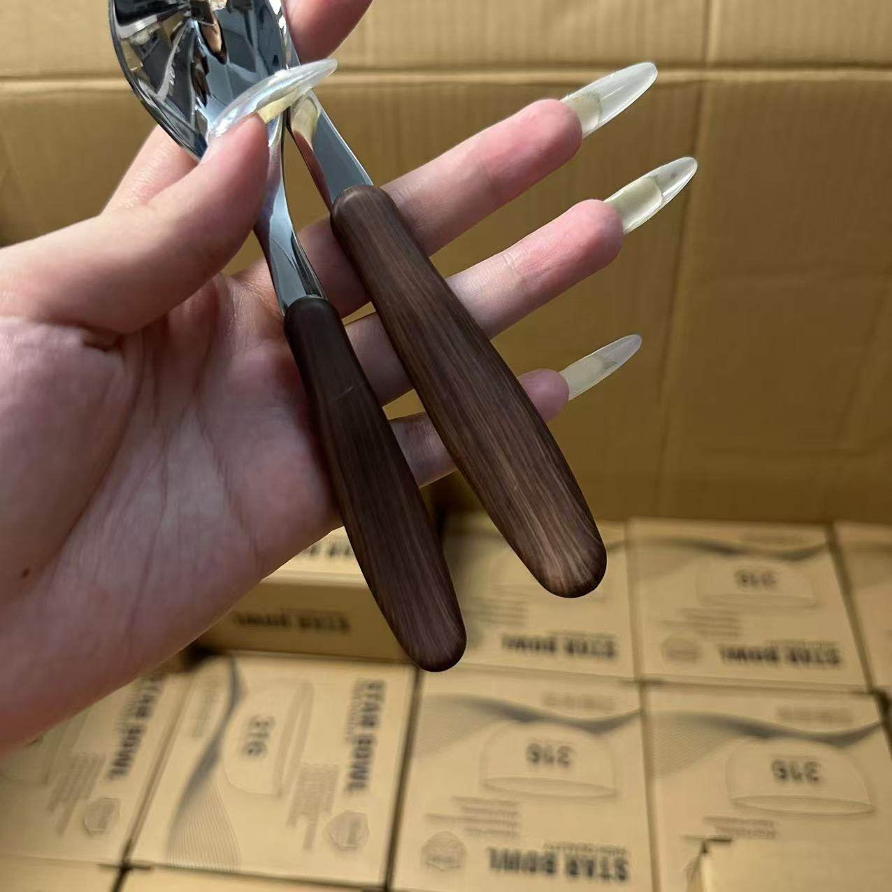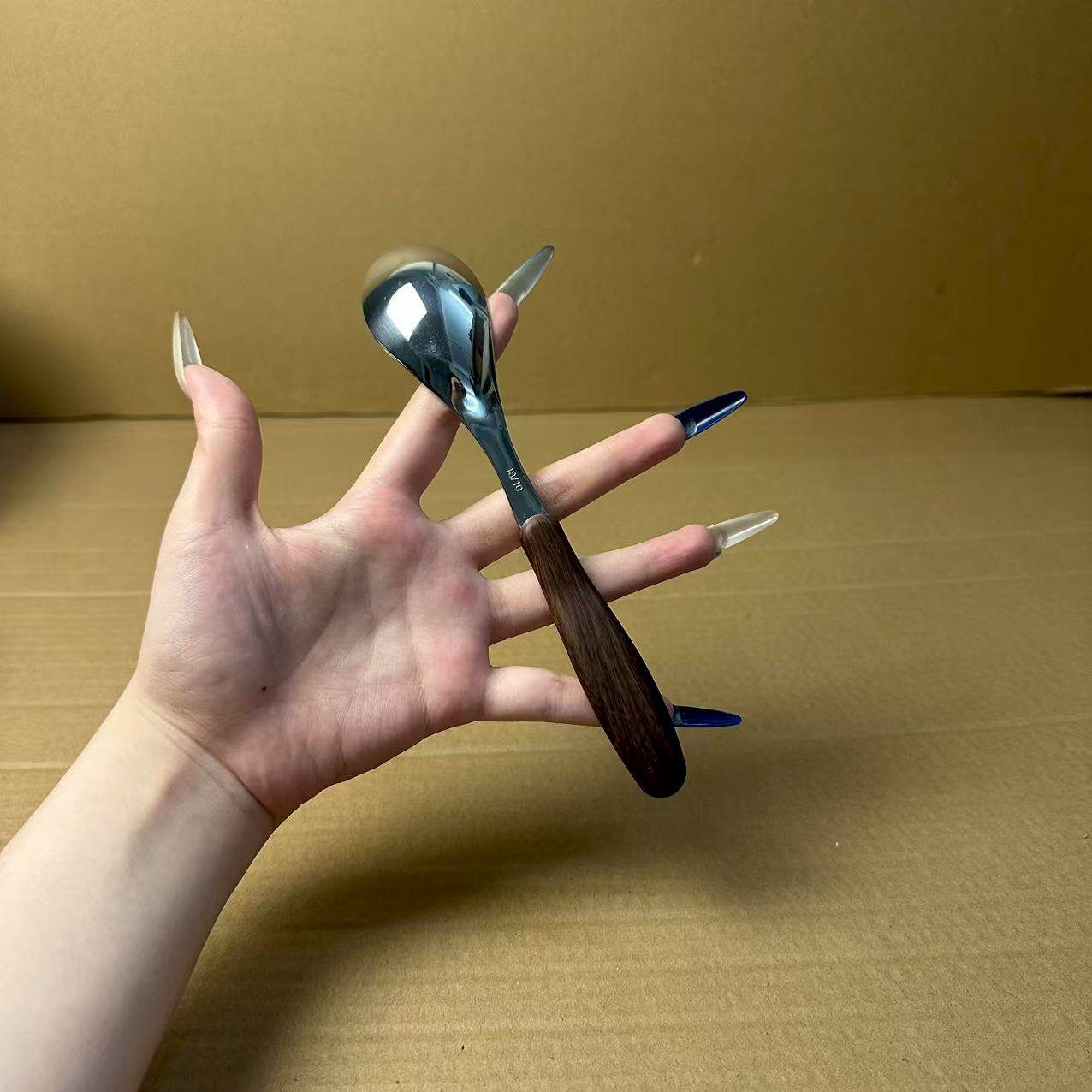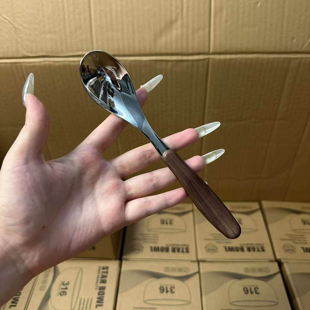 18/10不锈钢儿童仿木纹手柄餐勺