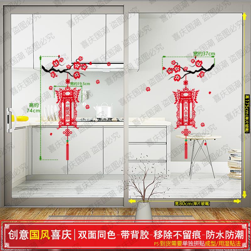简约龙年新年节庆灯笼玻璃门窗花贴纸厨房推拉门客厅装饰防撞贴画