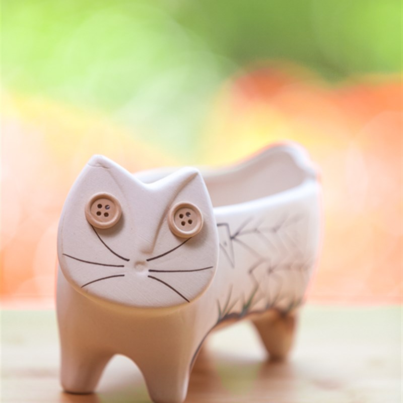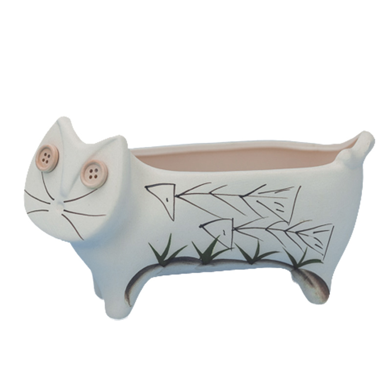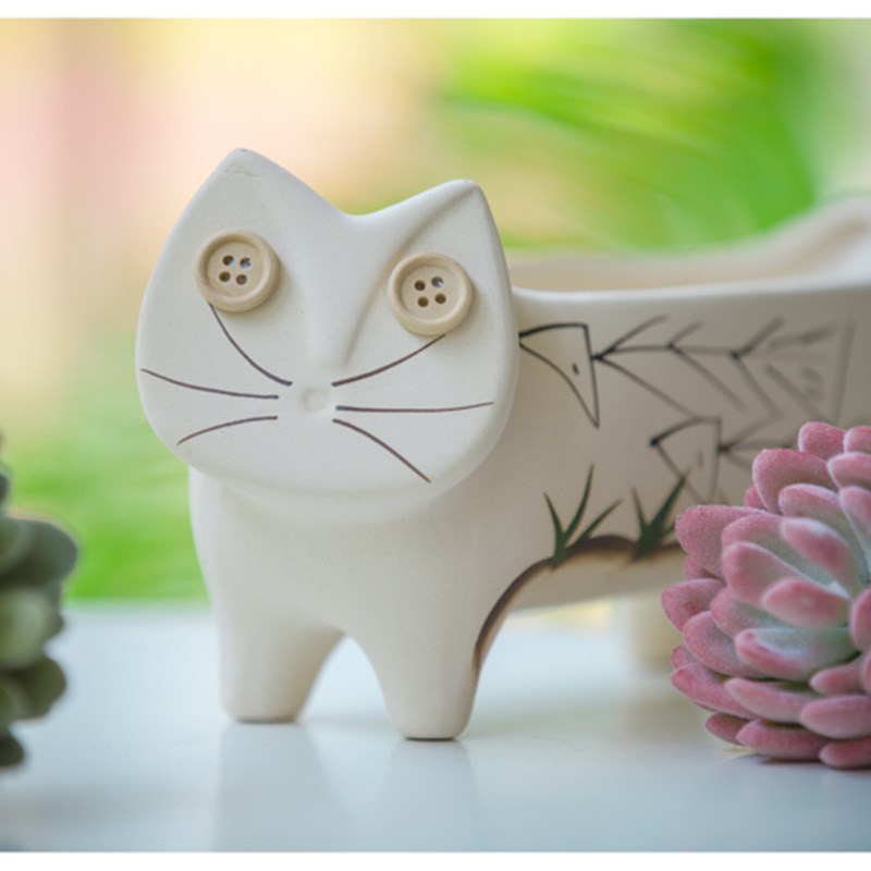 速发陶瓷多肉花盆粗陶可爱猫咪花器透气植物大脸猫个性大号家居摆
