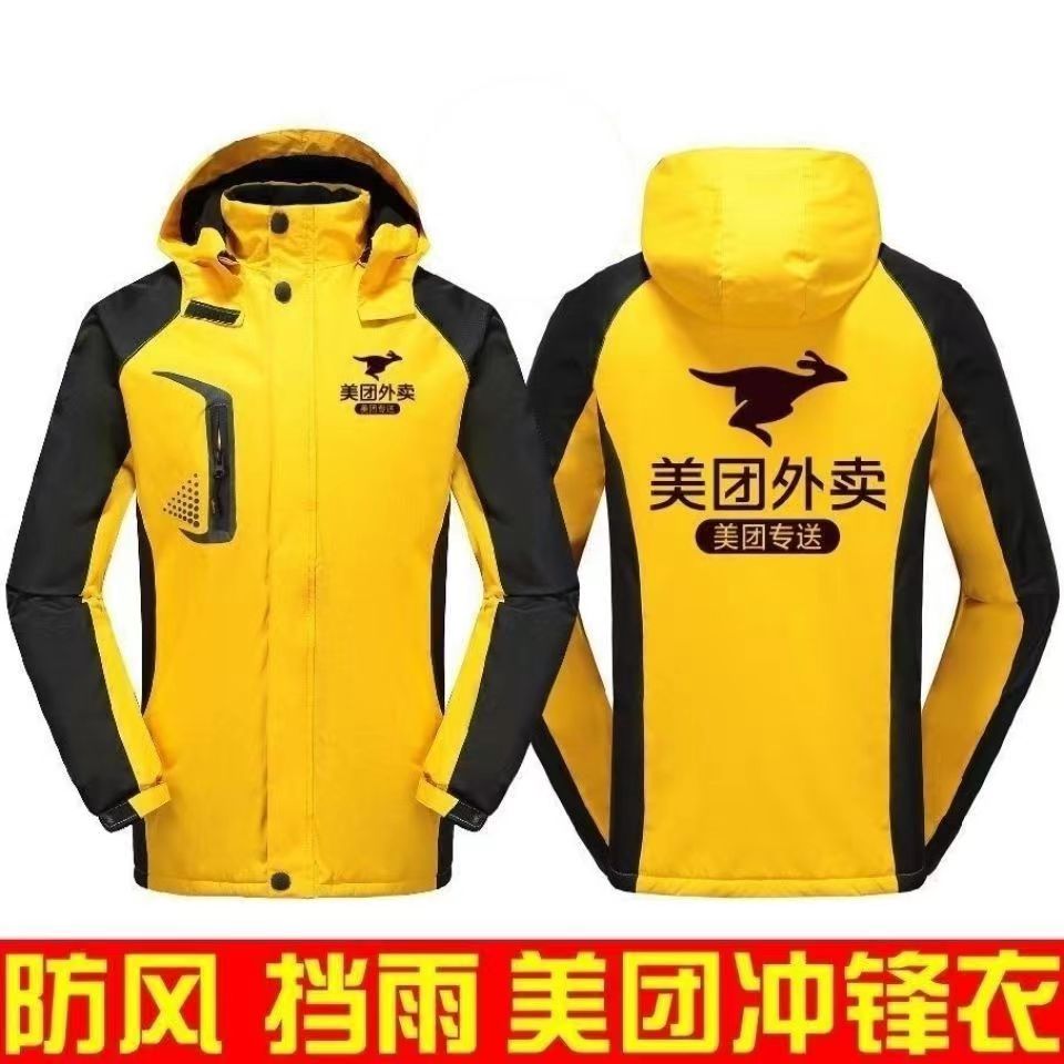 美 团外卖冲锋衣工作服骑手装备秋冬服装外套卫衣服风衣防风马甲
