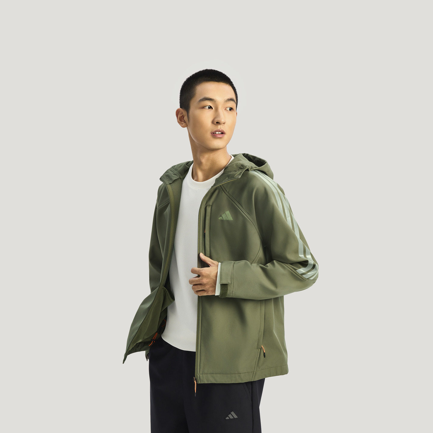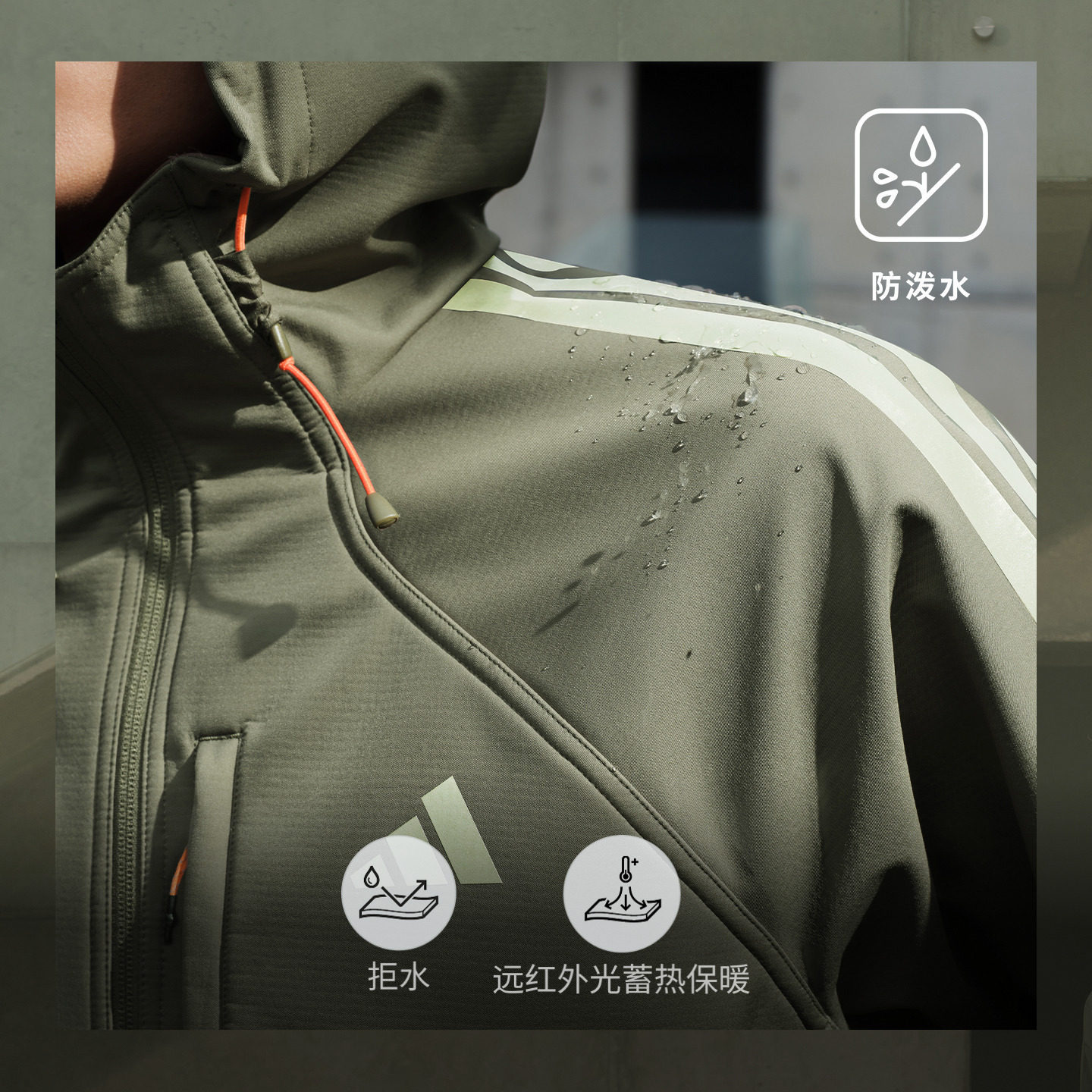拒水保暖软壳休闲连帽夹克外套男装新款adidas阿迪达斯轻运动