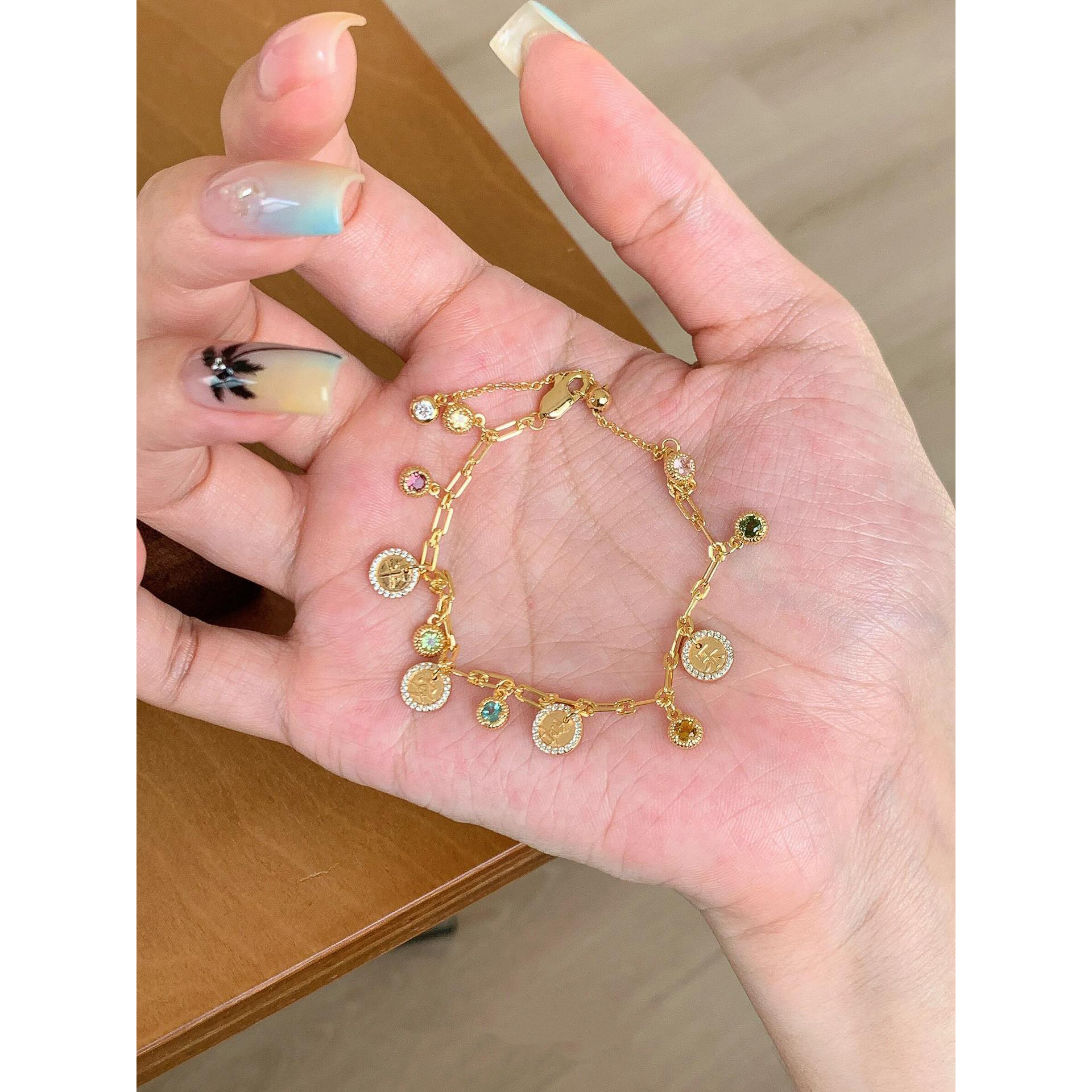 新中式彩虹碧玺手链女款轻奢小众精致高级感手串简约日常百搭手饰