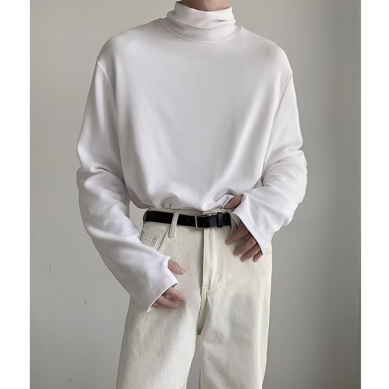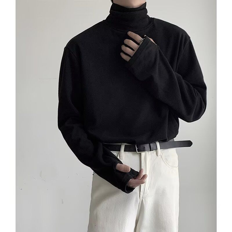 韩版秋冬季德绒半高领打底衫男宽松潮内搭黑色中高领秋衣长袖T恤