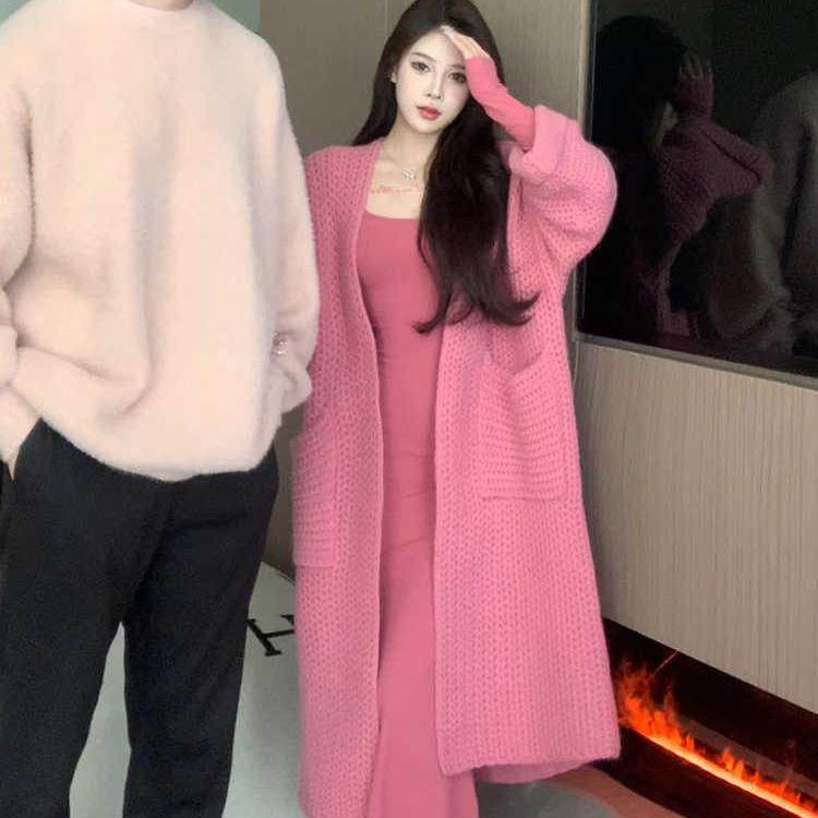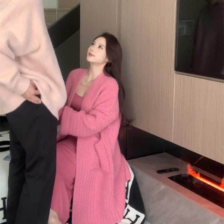 配大衣打底针织鱼尾连衣裙女春秋慵懒风软糯毛衣开衫外套两件套装