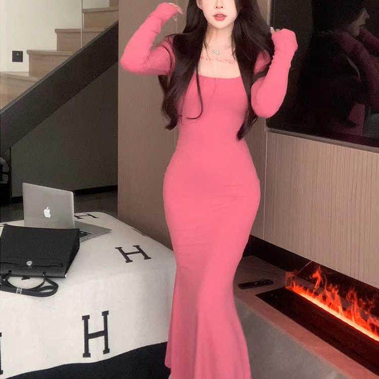 配大衣打底针织鱼尾连衣裙女春秋