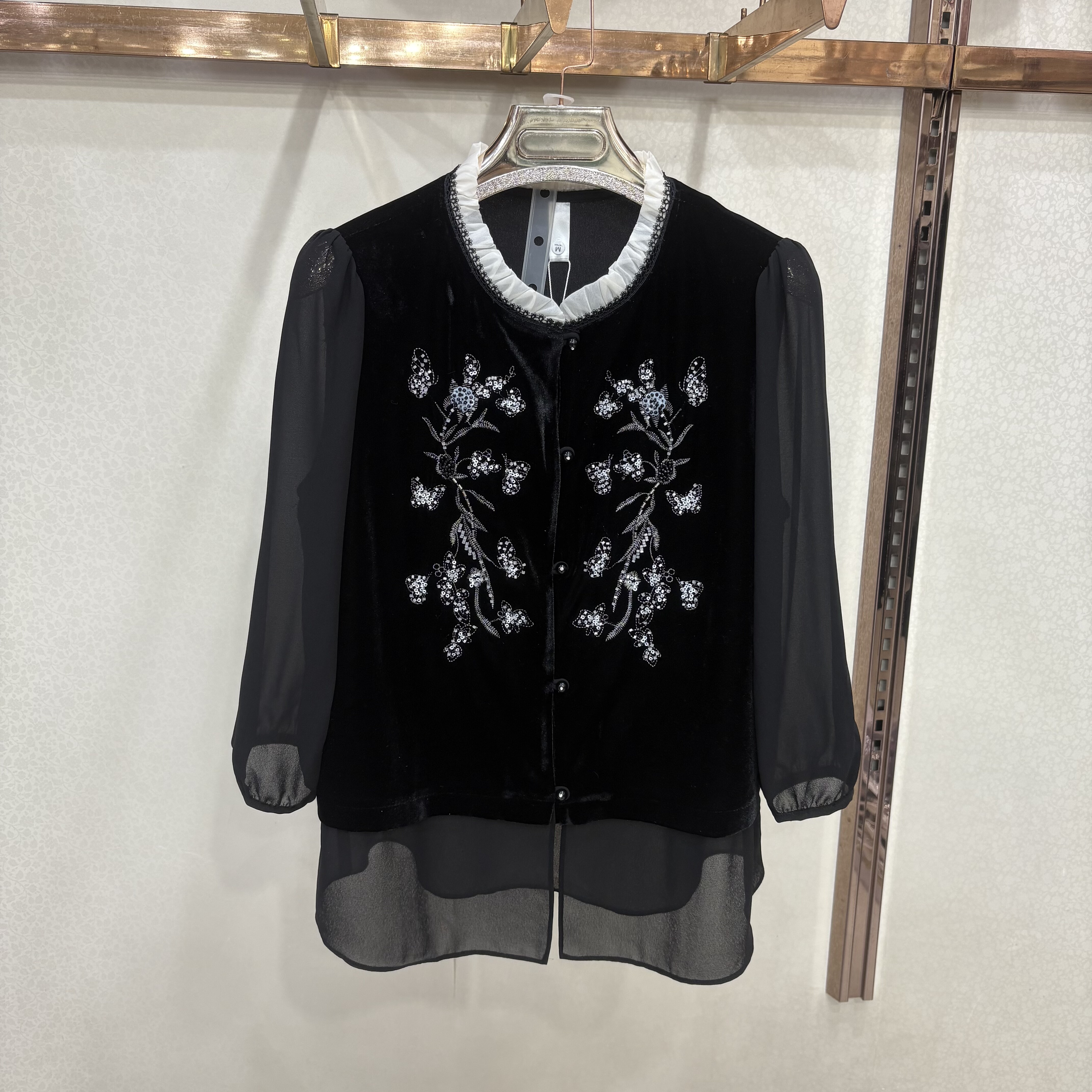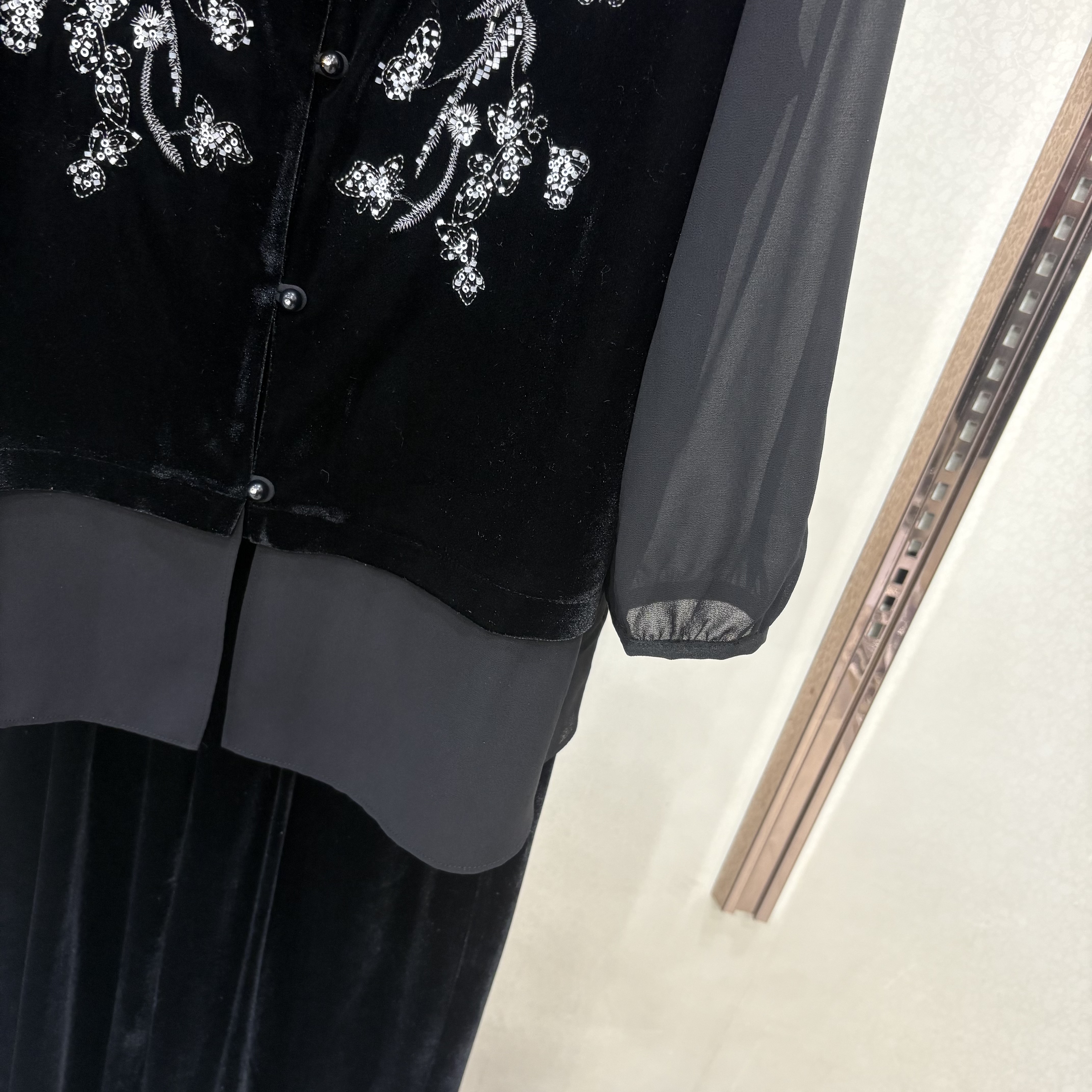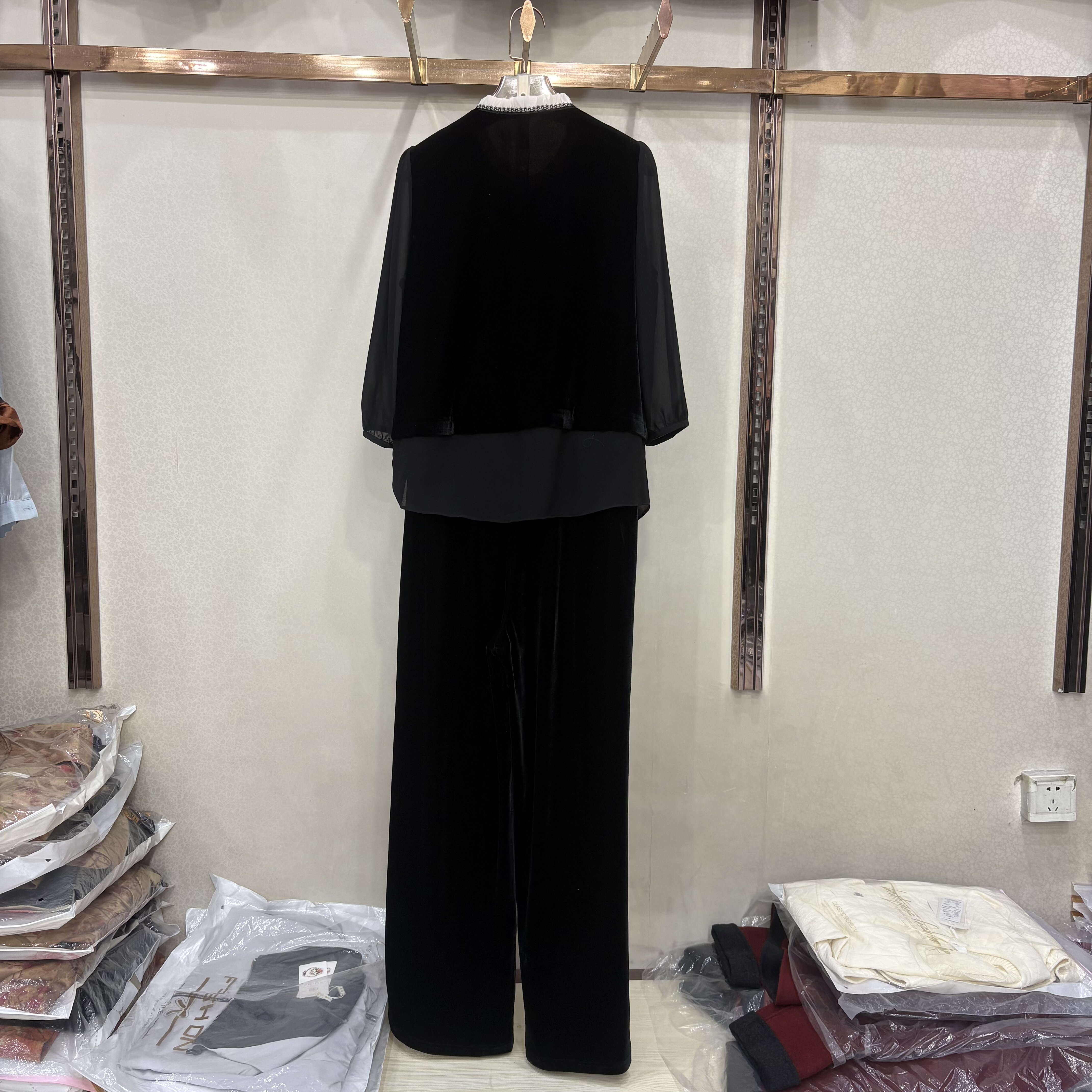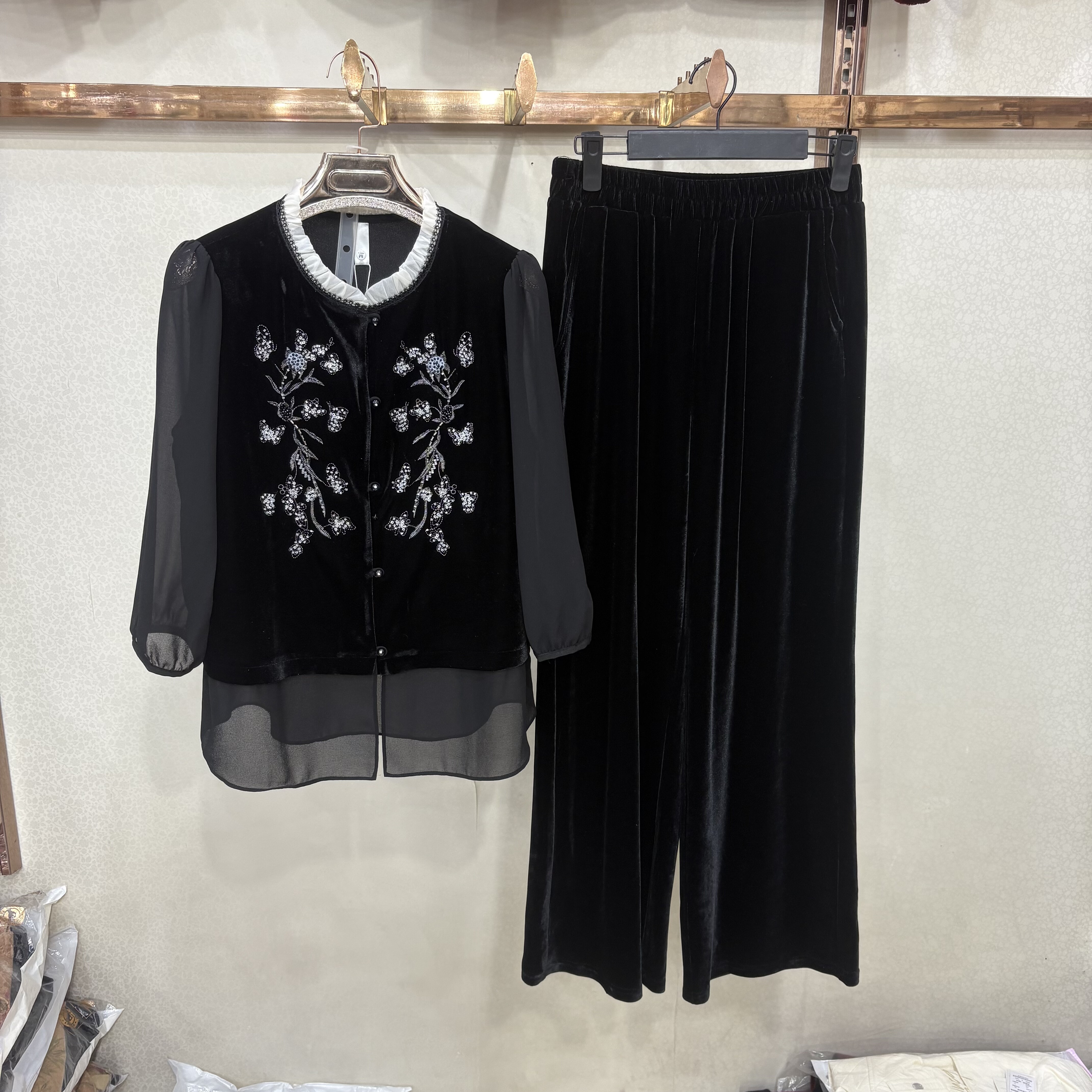 商场同款86029新中式国风金丝绒妈妈洋气假两件上衣阔腿裤两件套