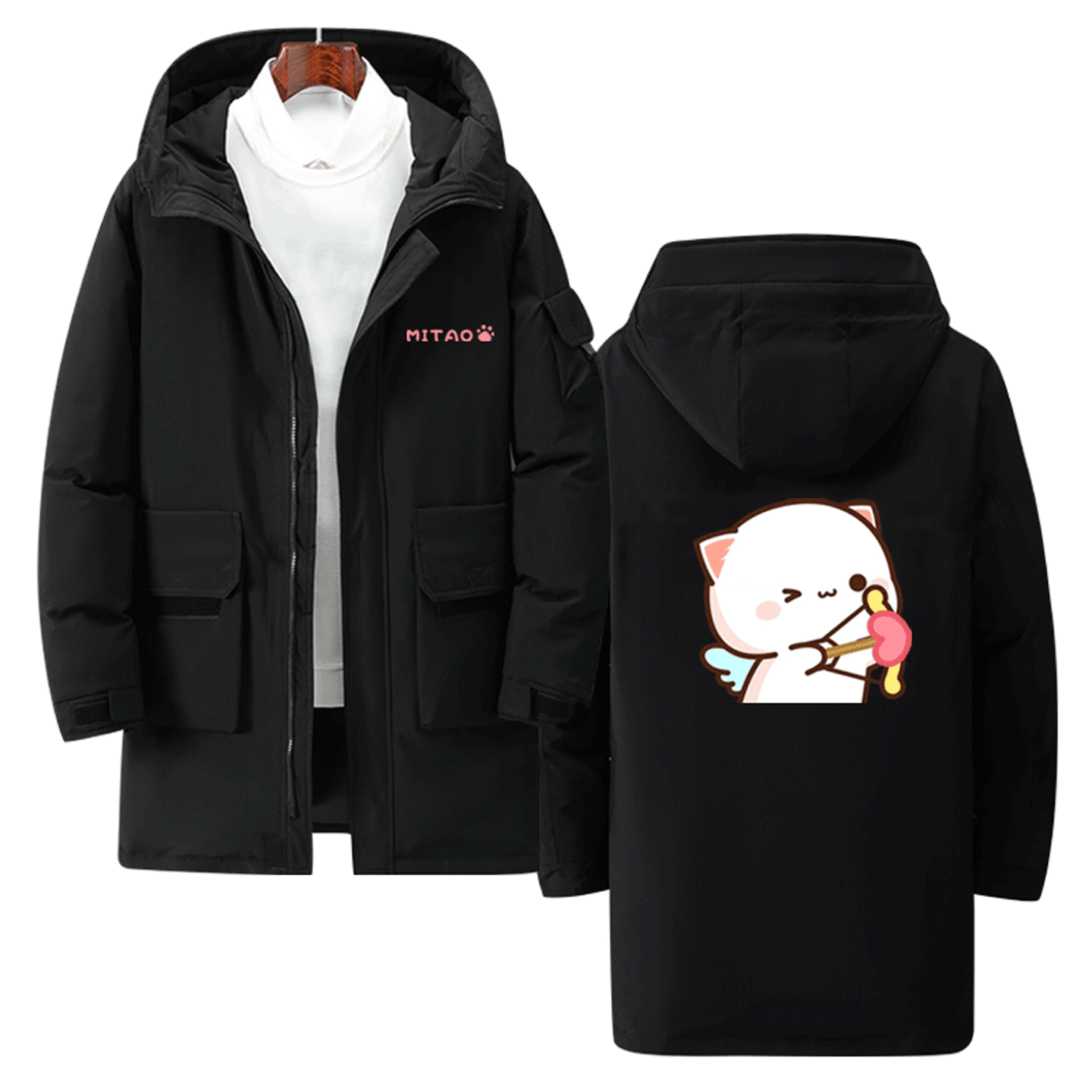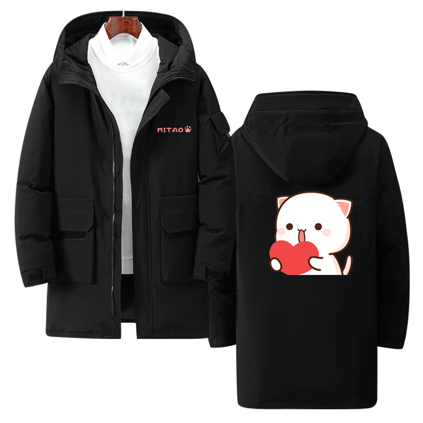 蜜桃猫可定制中长款羽绒服卡通可爱周边动画男女情侣同款时尚潮版