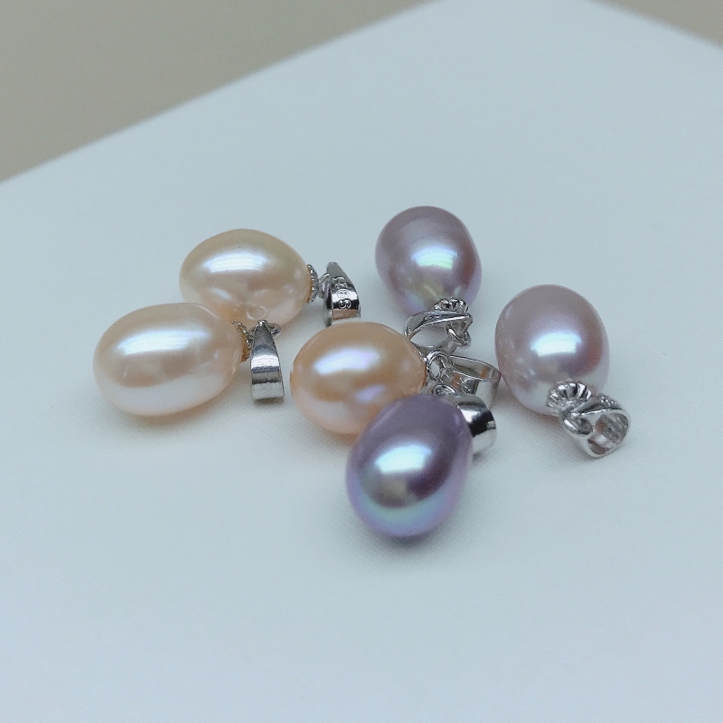 正品特价天然珍珠吊坠女潮米形单颗水滴强光时尚纯银百搭小众简约
