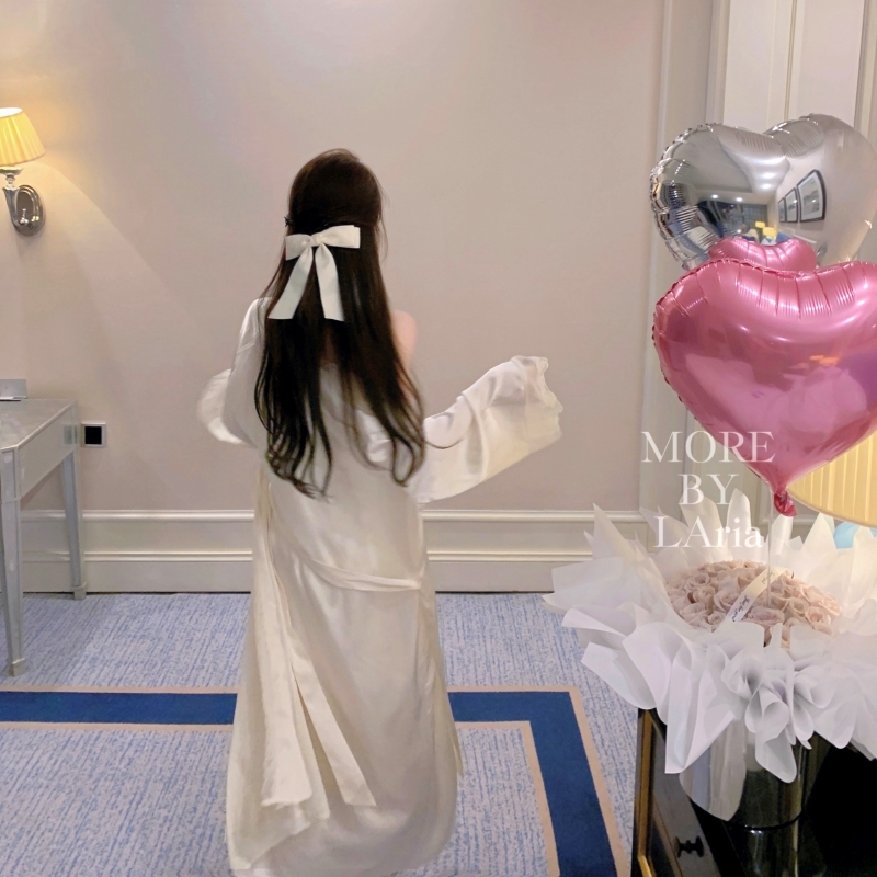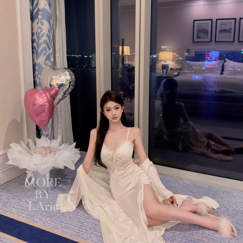LAria*奶油玫瑰 睡衣女纯欲风冰丝春夏季性感吊带睡裙带胸垫睡袍