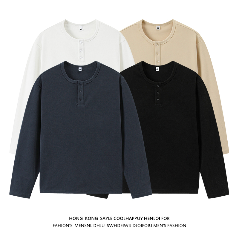 "ONLY BLUE studio"工作室线上商店百搭亨利领德绒长袖T恤男上衣