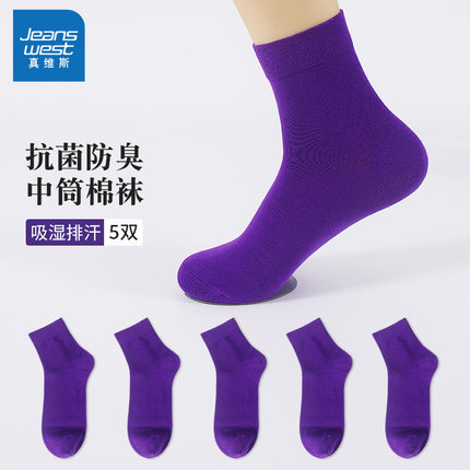 真维斯男士袜子男紫色抗菌防臭中筒袜秋冬透气男生本命年深紫长袜