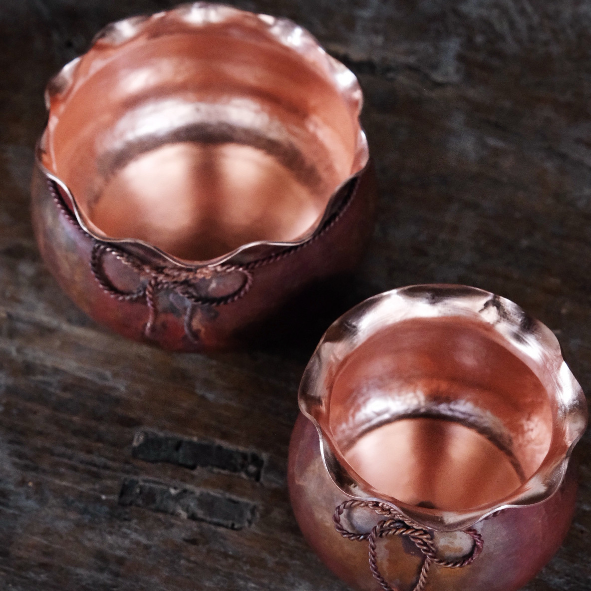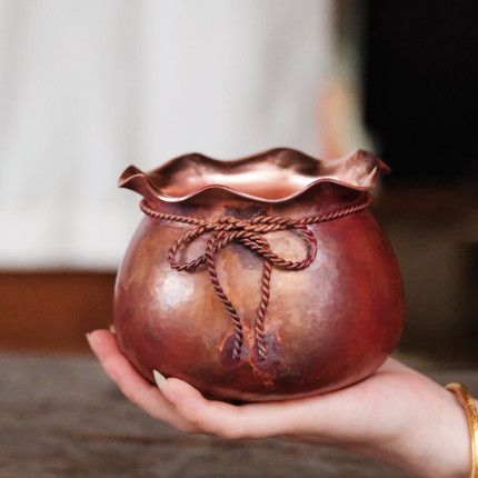 葵口福袋建水 纯手工铜丝镶嵌建水紫铜茶渣缸茶洗煮茶器功夫茶具