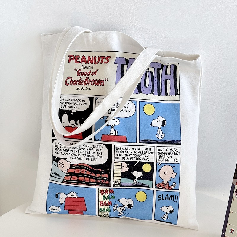 ins可爱史努比卡通帆布袋大容量购物袋韩系小清新学生文艺单肩包