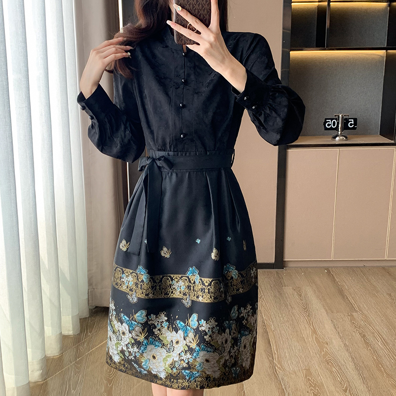 新中式汉服连衣裙2025秋装改良国风高端刺绣提花年会晚礼服马面裙