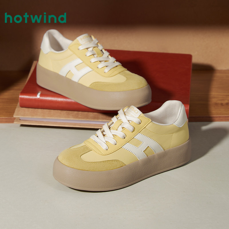 热风厚底德训鞋女款2026年春季新款百搭增高休闲鞋复古板鞋女鞋子