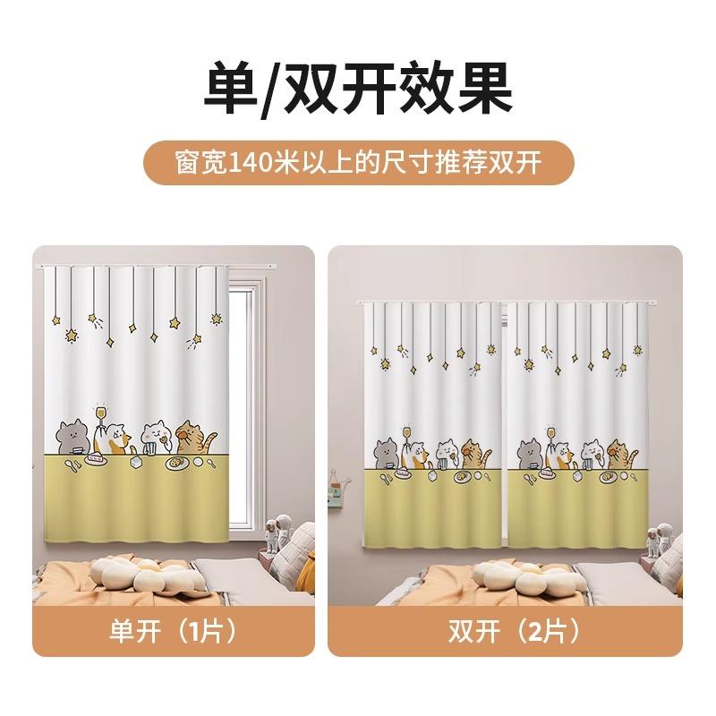 简易儿童房窗帘遮光2025新款免打孔轨道男女孩卧室小窗户短遮阳布