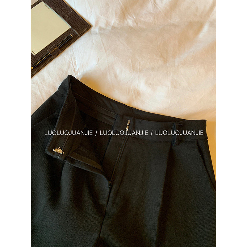 落落狷介 黑色西装裤女阔腿裤秋冬设计感小众高腰裤子小个子百搭