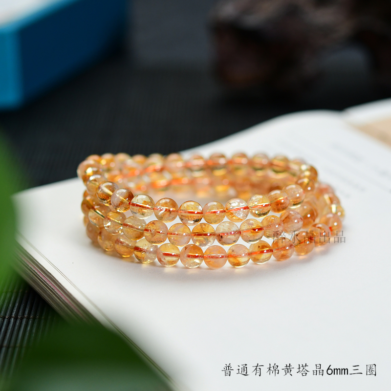 天然黄水晶多圈手链 6mm 黄塔晶三圈手链 巴西暴力黄手串 XL381