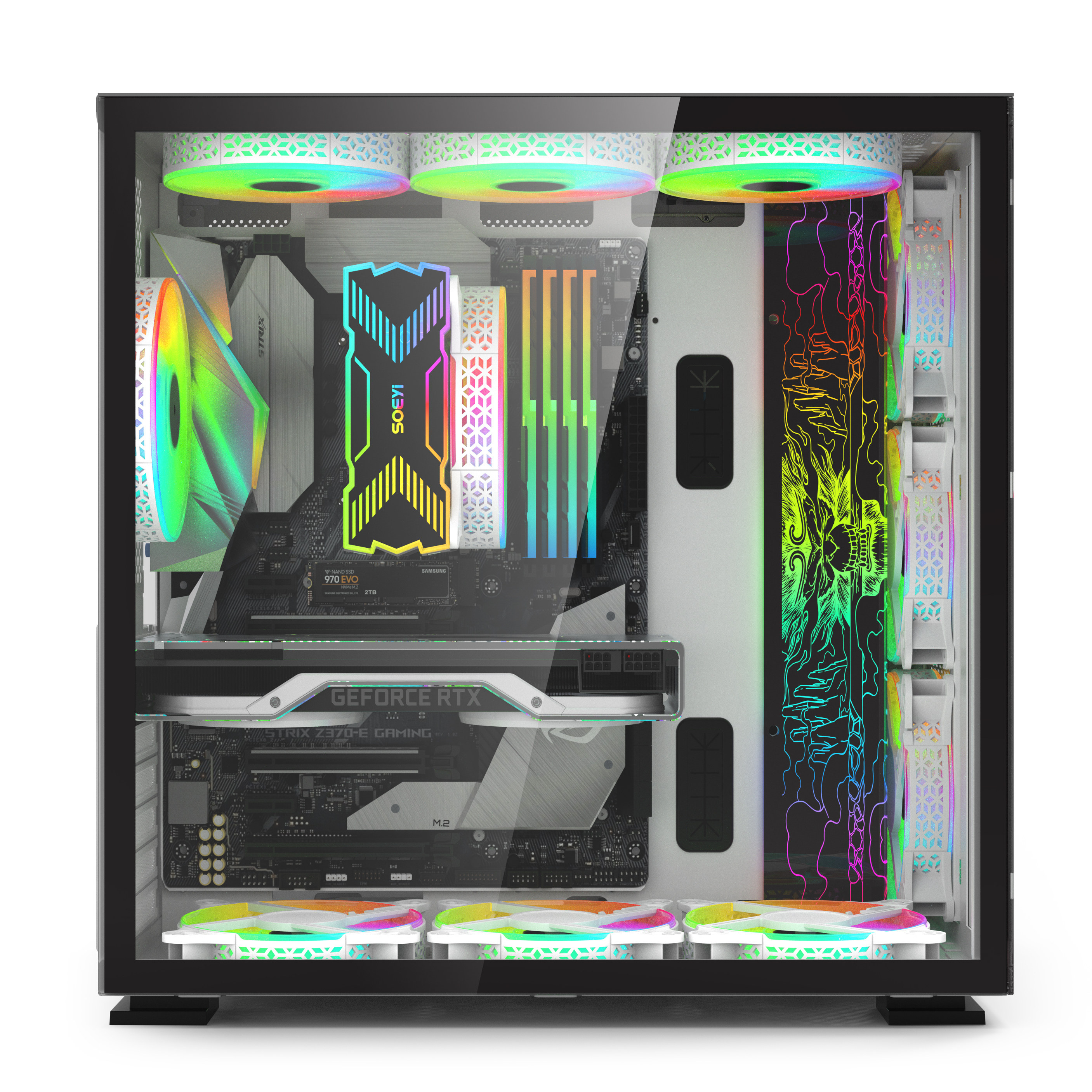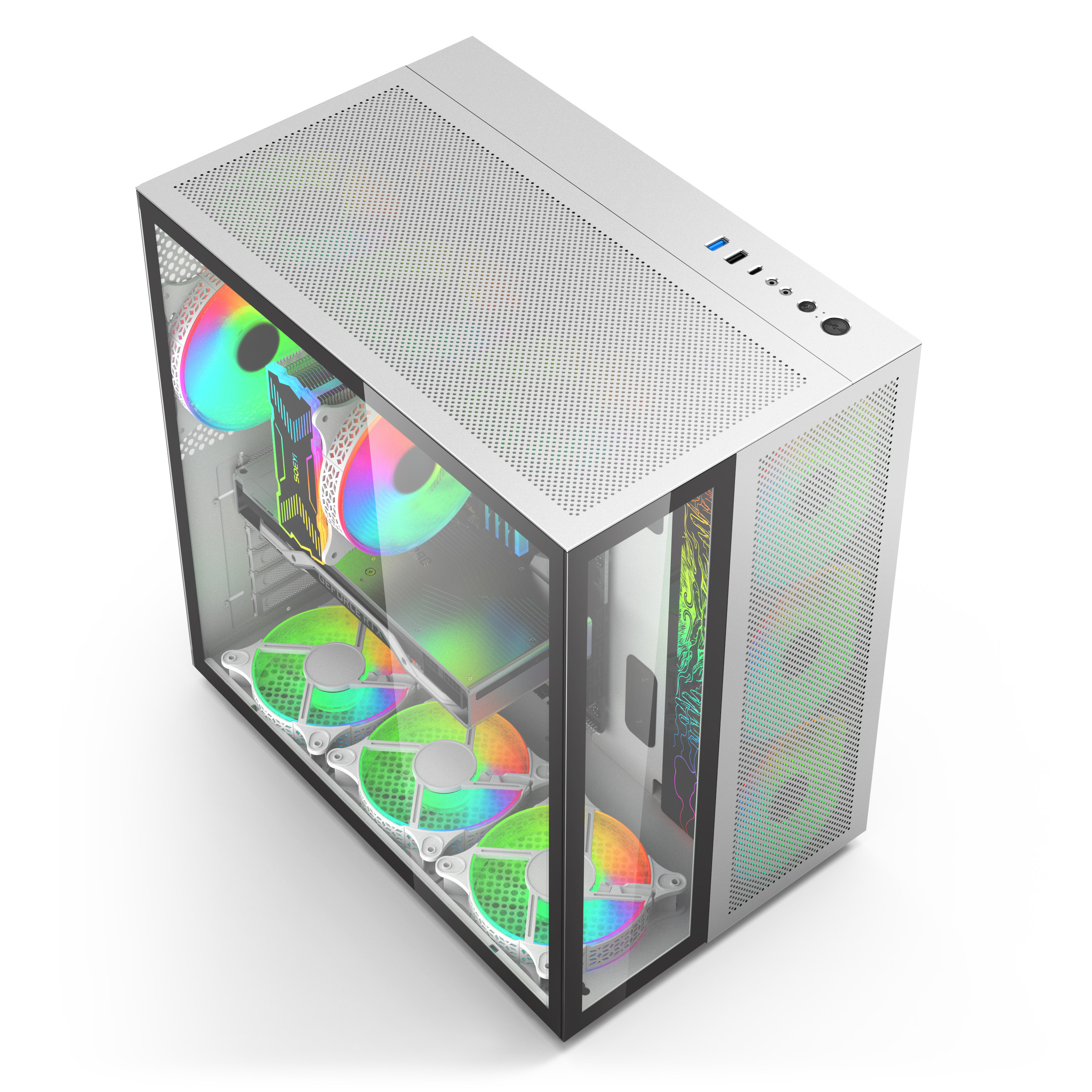 【尾货清仓】T3台式机电脑atx大板白色海景房主机箱侧透铝机箱