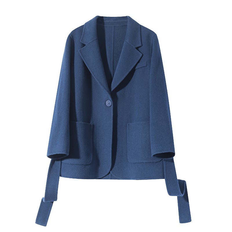 错过可惜~CHAO性价比~百分百羊毛一粒扣西装领配腰带双面呢大衣女