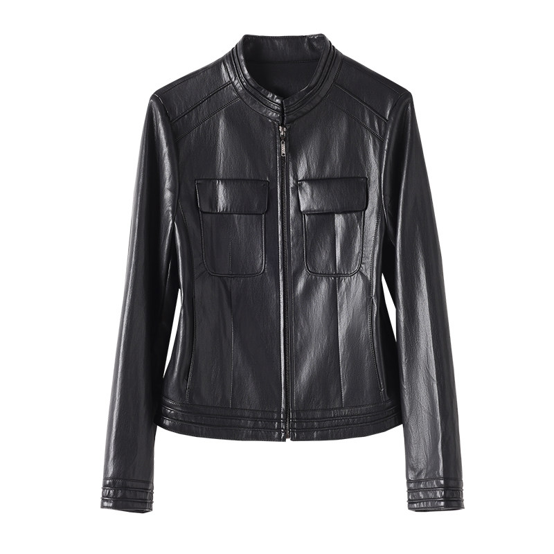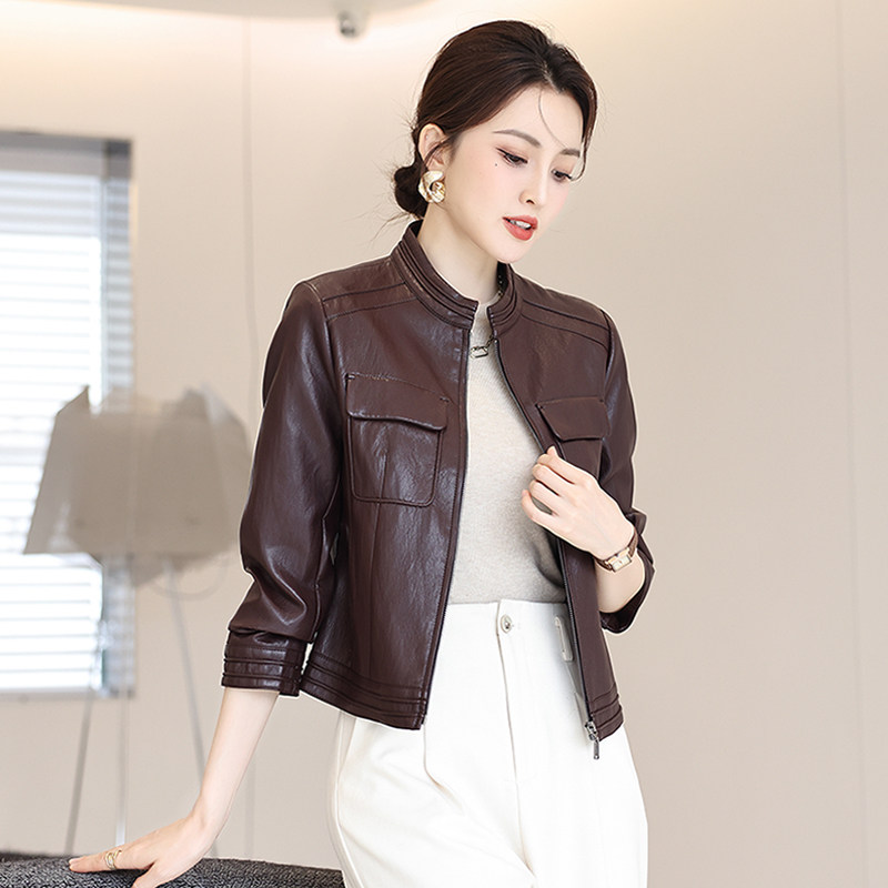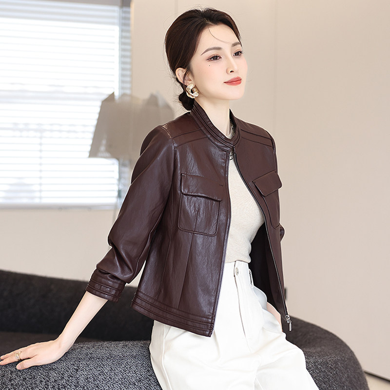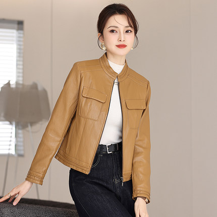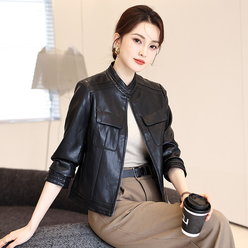 真皮皮衣女短款2025海宁春秋新款大码立领修身显瘦绵羊皮夹克外套
