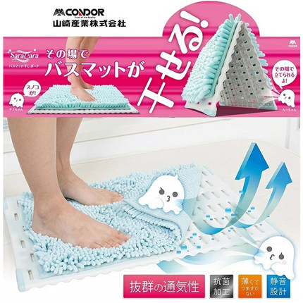 日本山崎产业超强瞬间吸水浴室垫 防滑抗菌浴垫托 降噪透气可折叠