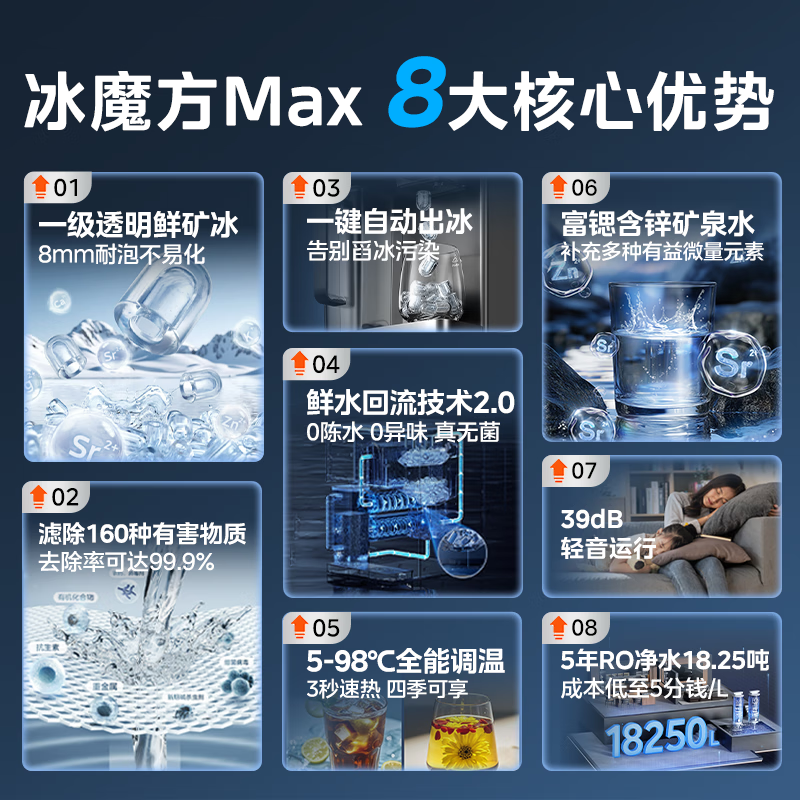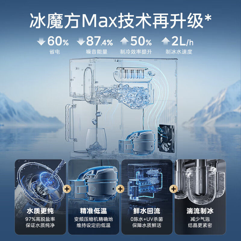 美的冰魔方家用制冰净水器直饮矿化台式即热一体净饮水机MAX