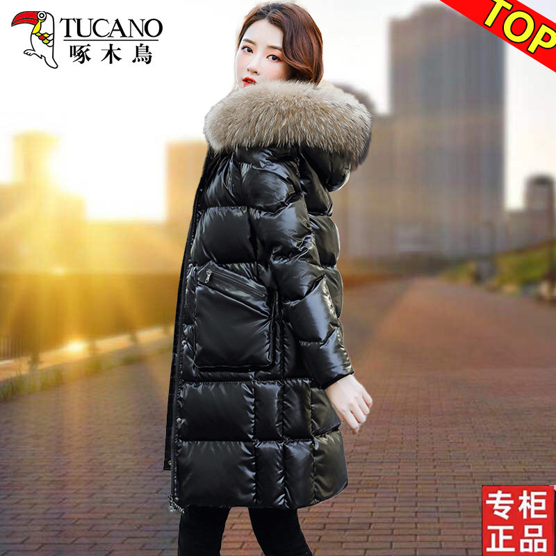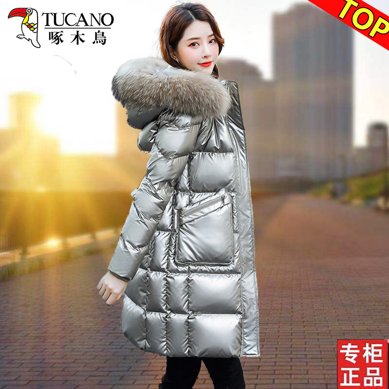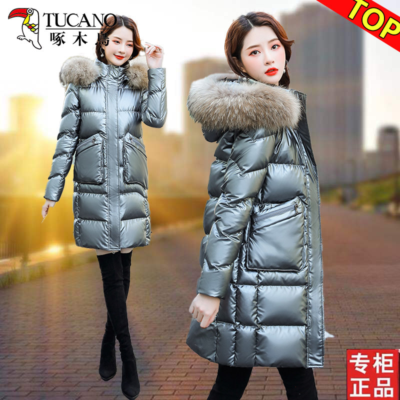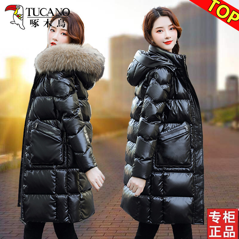 啄木鸟亮面免洗白鸭绒羽绒服女款中长款大码中年妈妈2025新款爆款