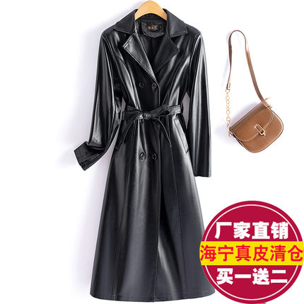 真皮皮衣女中长款皮风衣大码外套