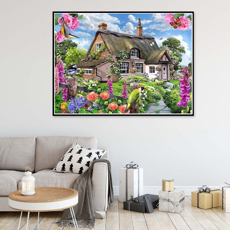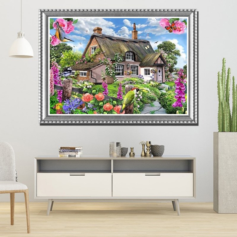 2024新款卧室5D钻石画风景小幅梦幻花园小屋客厅手工点贴钻十字绣