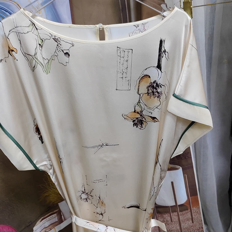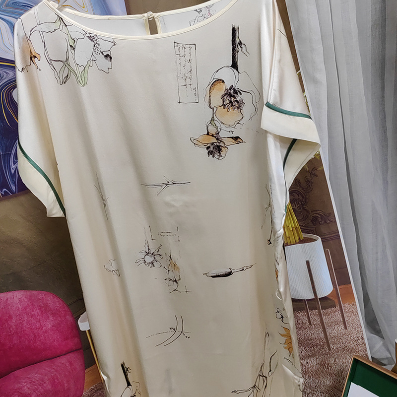 618新款短袖桑蚕丝睡裙女夏印花重磅桑蚕丝睡衣19姆米家居服