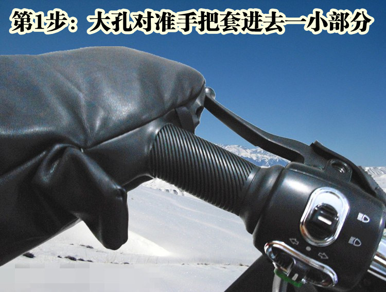 电瓶摩托电动车把套护手冬季天男女双孔拇指加厚防水皮革加绒加厚