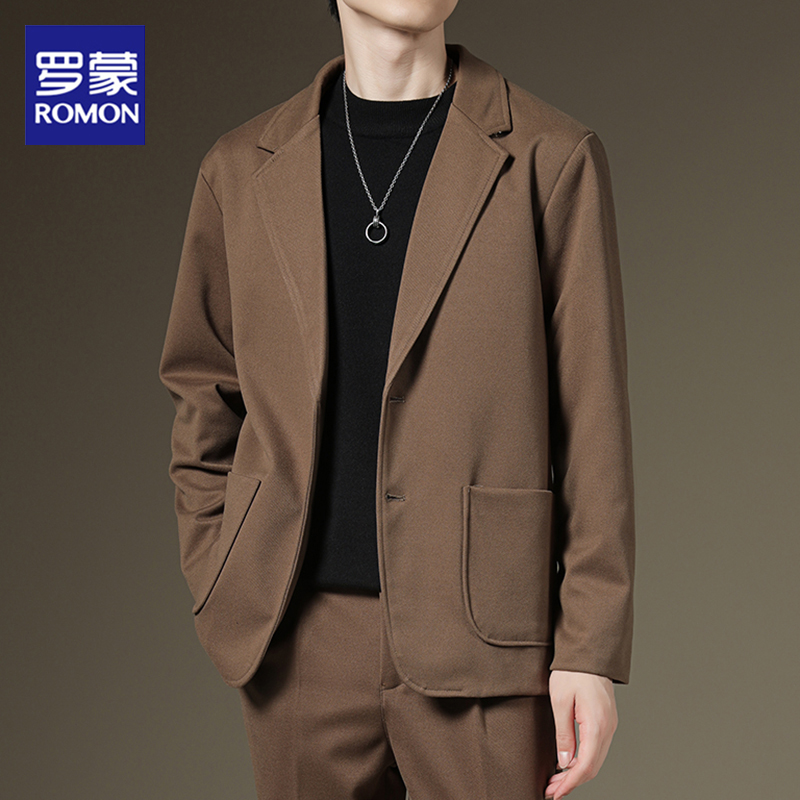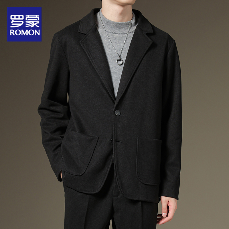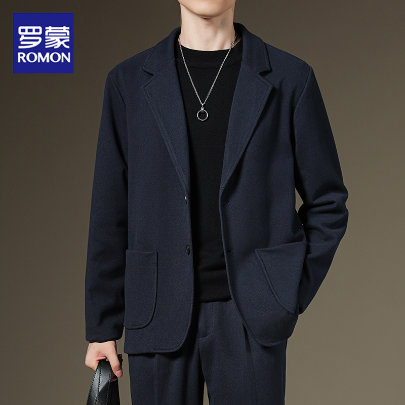 罗蒙秋冬季厚款毛呢西装外套男士休闲高级感灰色西服上衣单西韩版