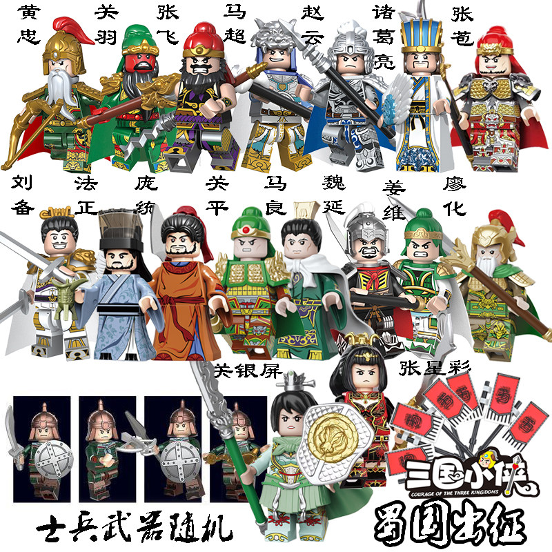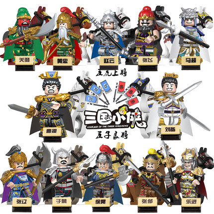 三国小侠人仔积木拼装玩具三国演义城堡关羽古代士兵关羽张飞刘备