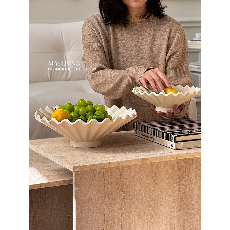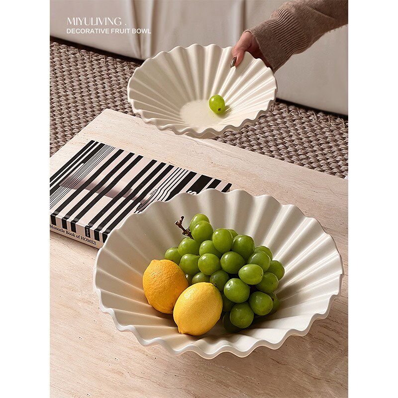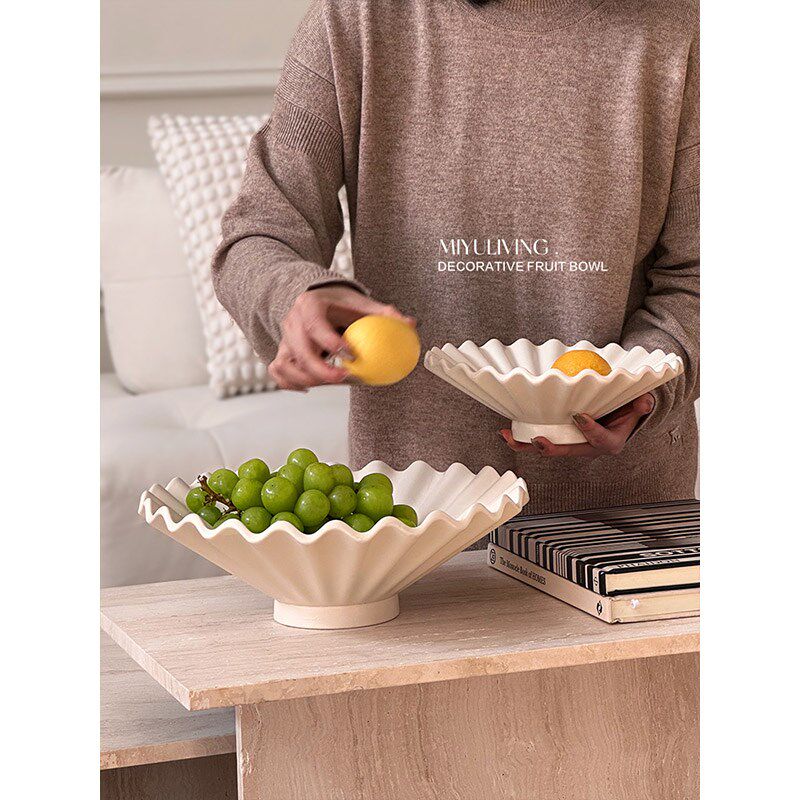 觅屿 陶瓷百褶果盘装饰果碗法式轻奢高档家用收纳艺术感餐桌摆件