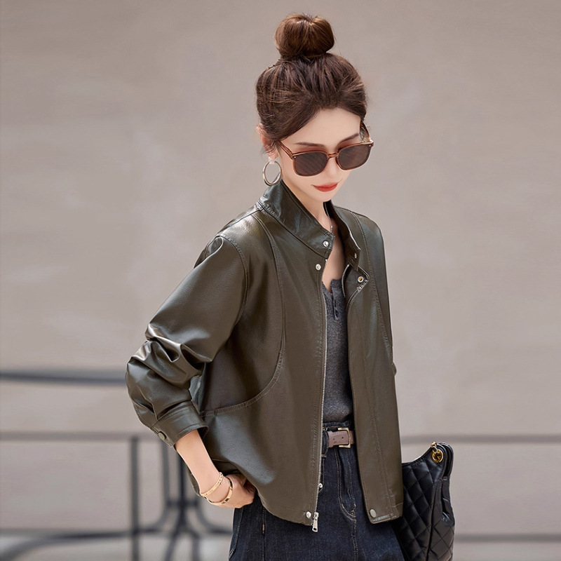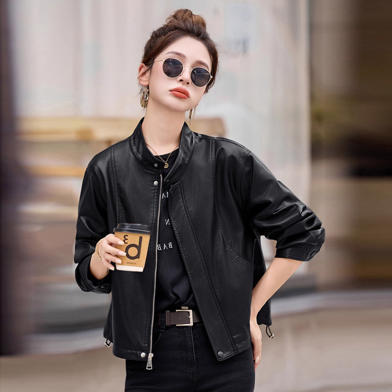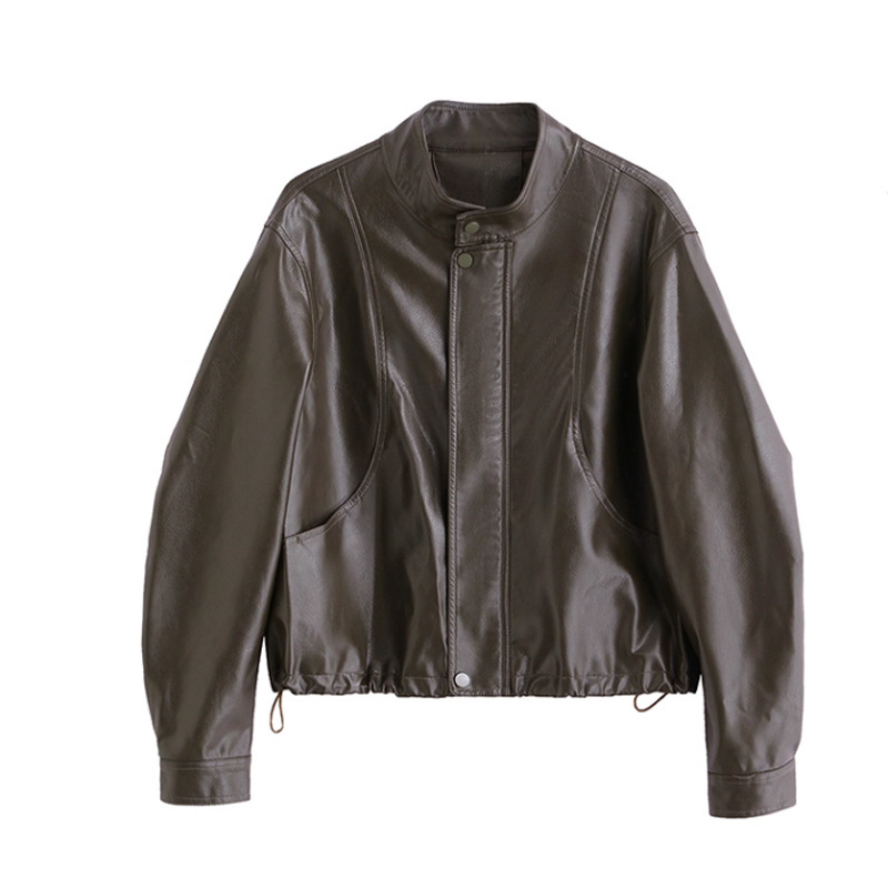 美拉德皮衣外套女春秋2025新款短款宽松休闲复古PU皮机车夹克上衣