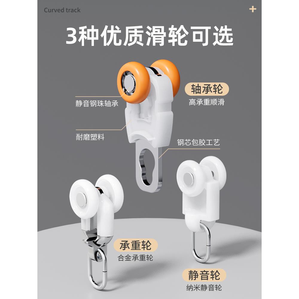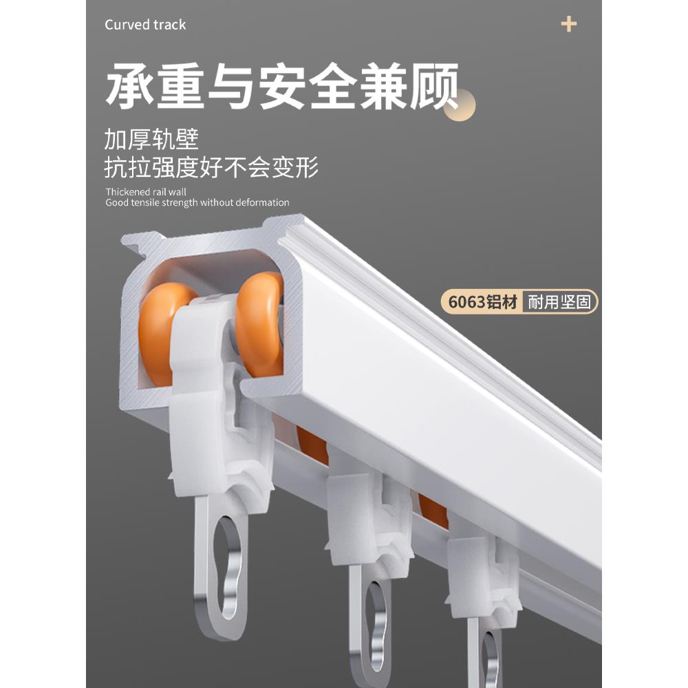窗帘轨道式滑轮滑轨导轨双轨静音顶侧装飘窗铝合金挂钩滑道窗帘杆
