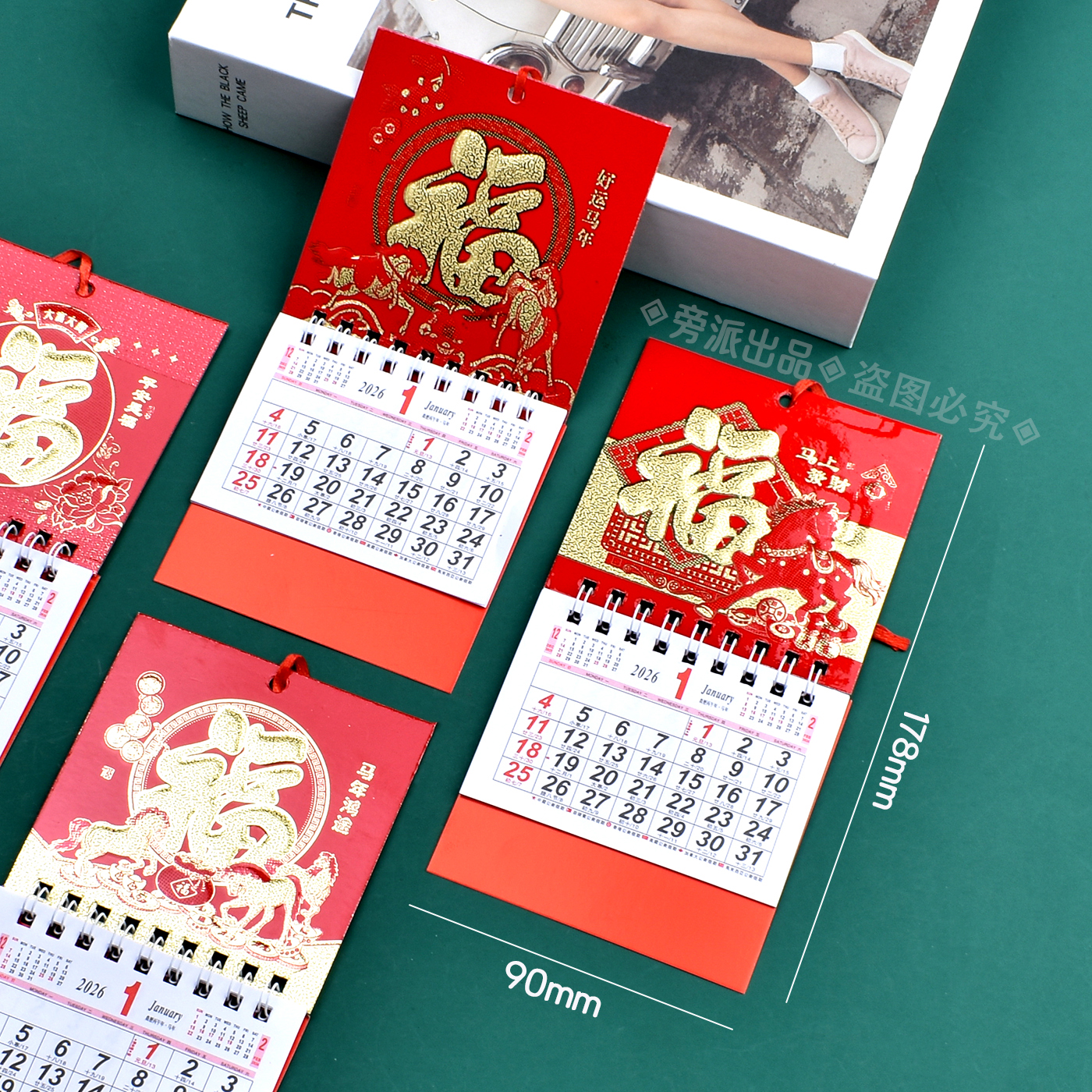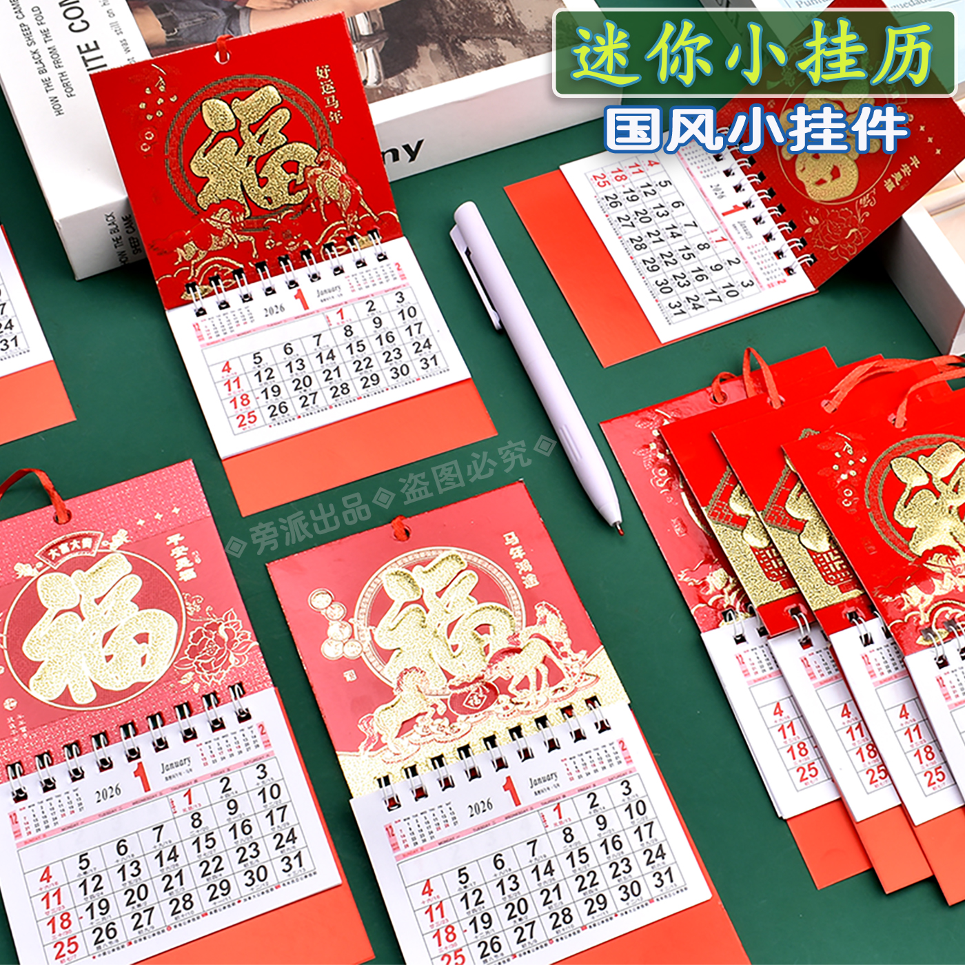 2026年新款迷你挂历马年小号日历桌面摆件小挂历手撕便携带日历中国风福字