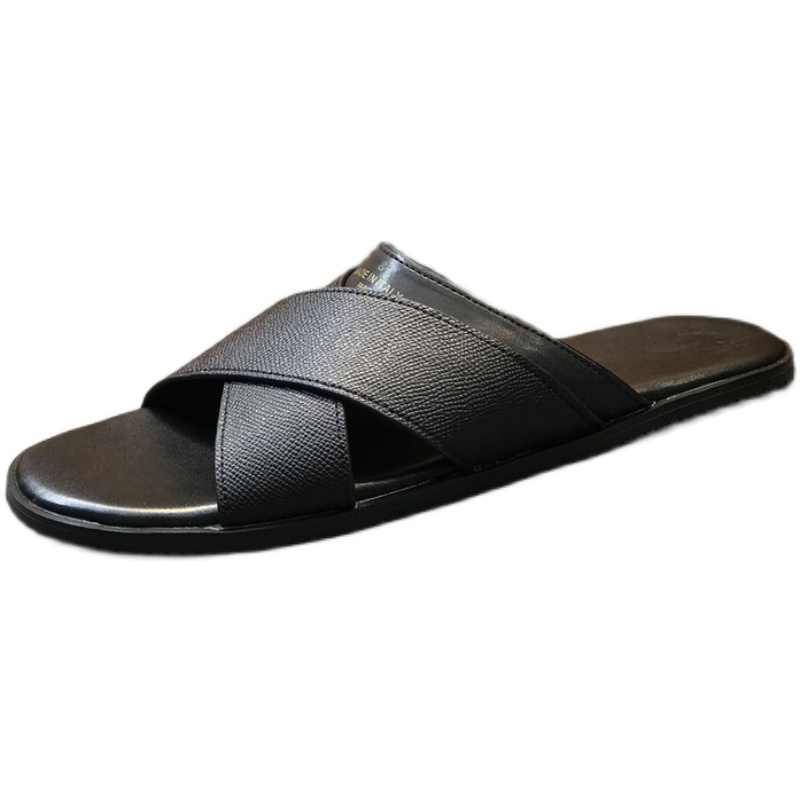 拖鞋脚蹬男一字欧洲站牛皮透气