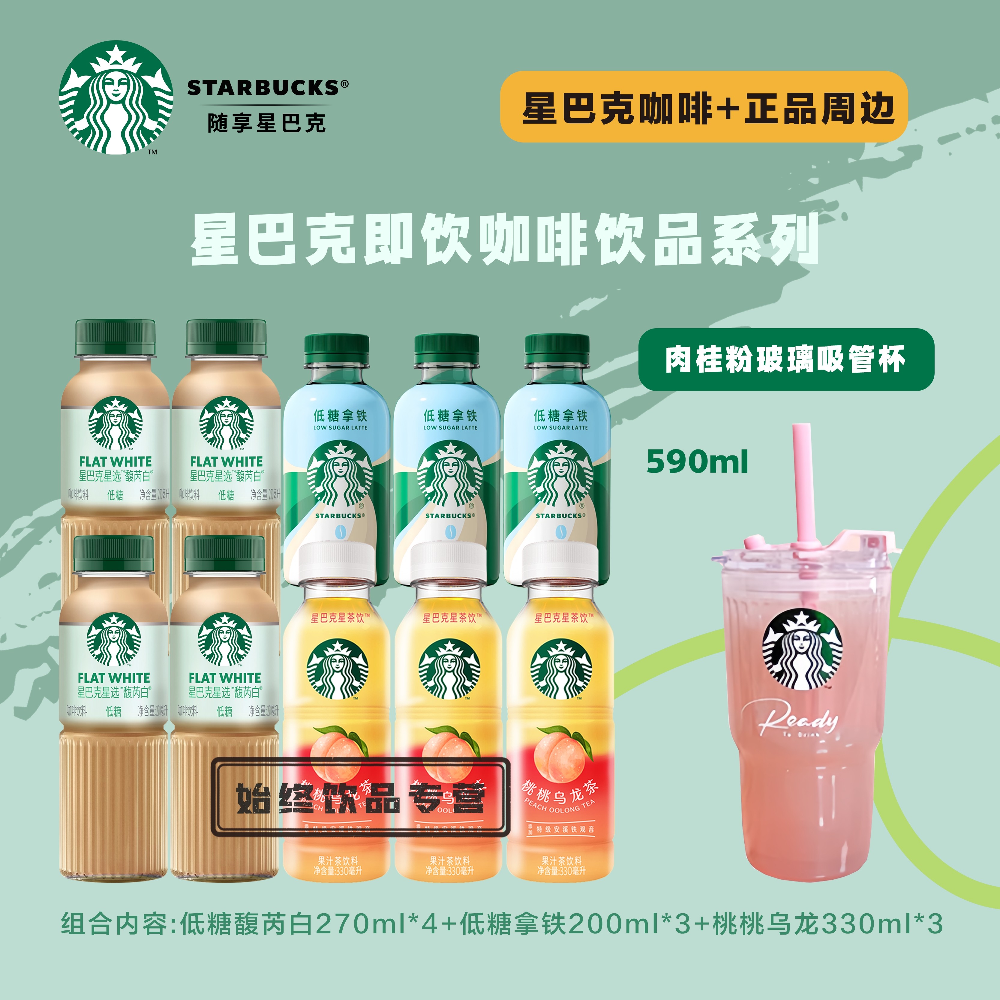 starbucks/星巴克咖啡星冰乐拿铁 即饮咖啡 瓶装 提神 樱花杯