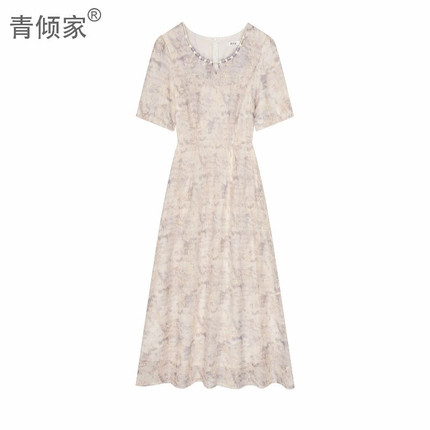 青倾家山黛暮雪棉麻红刺绣原创连衣裙女装夏季收腰显瘦气质长裙