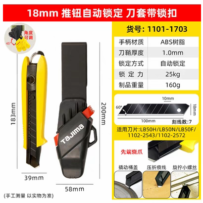 日本TAJIMA田岛1101-1705 06自锁带刀壳美工刀18mm墙纸刀架SK120