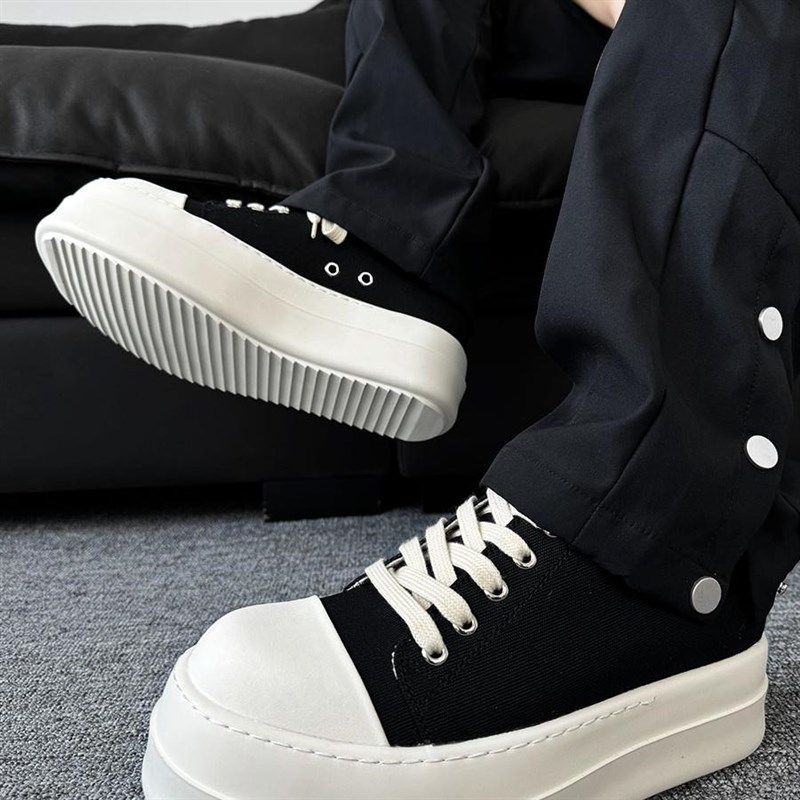 美式厚底帆布鞋男小众运动高街情侣大头板鞋通勤增高松糕德比鞋女
