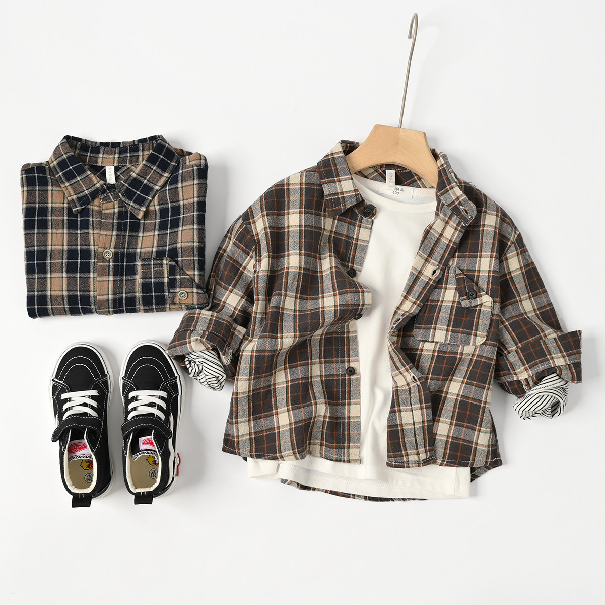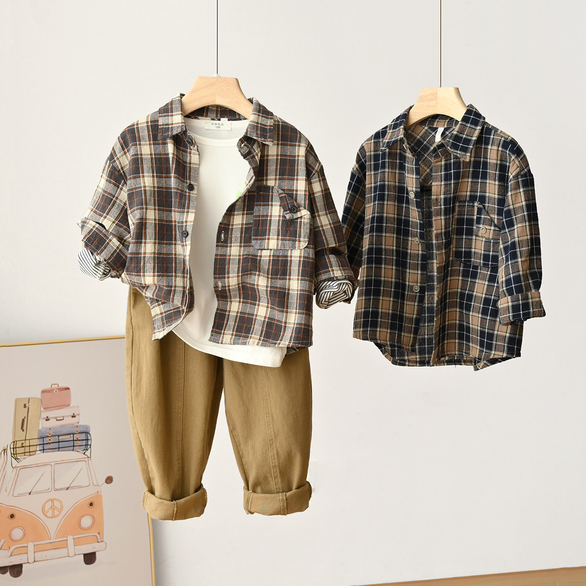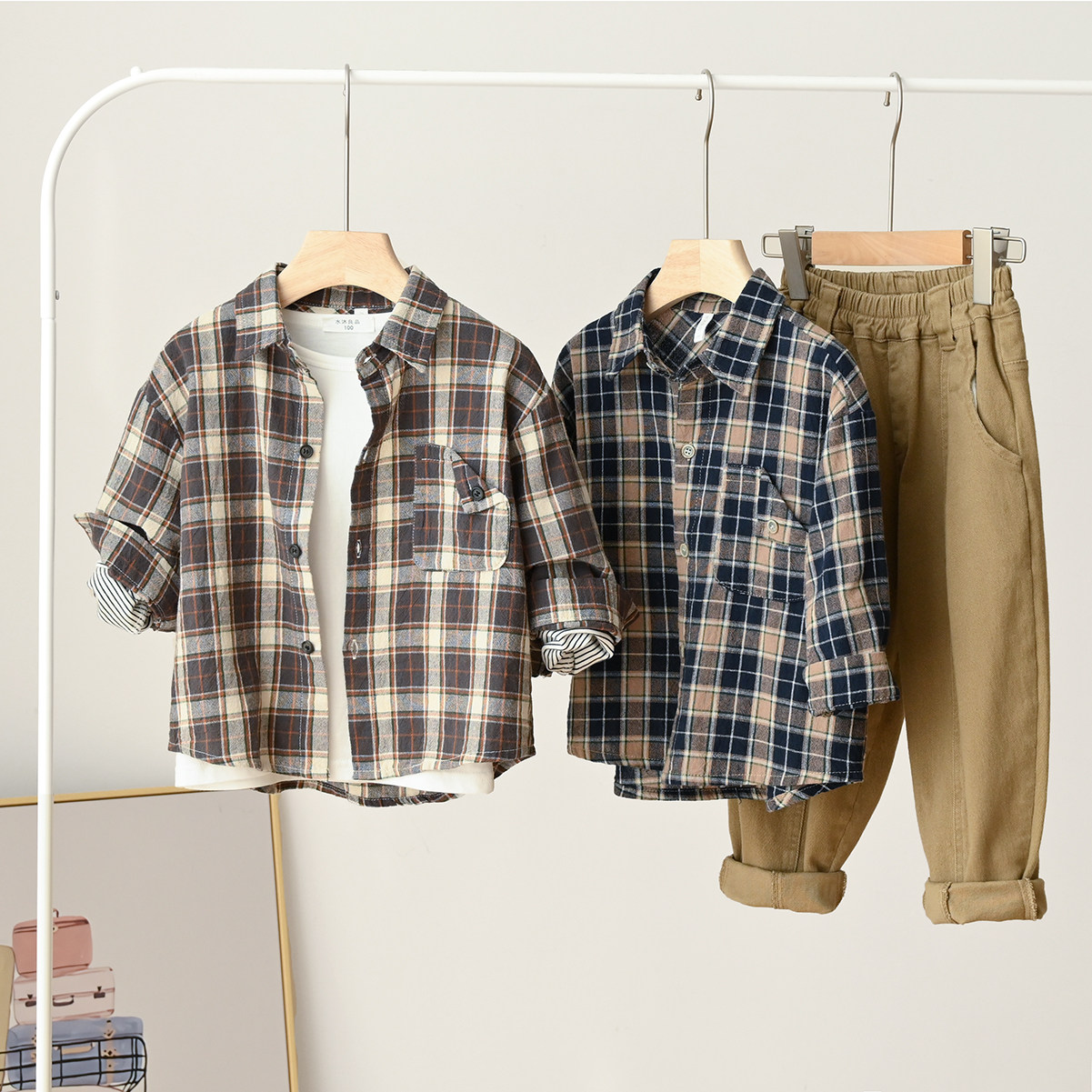 特 儿童纯棉格子衬衫 男童女童长袖衬衣 内搭外穿 春秋款 童装