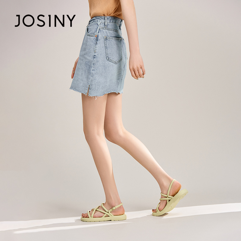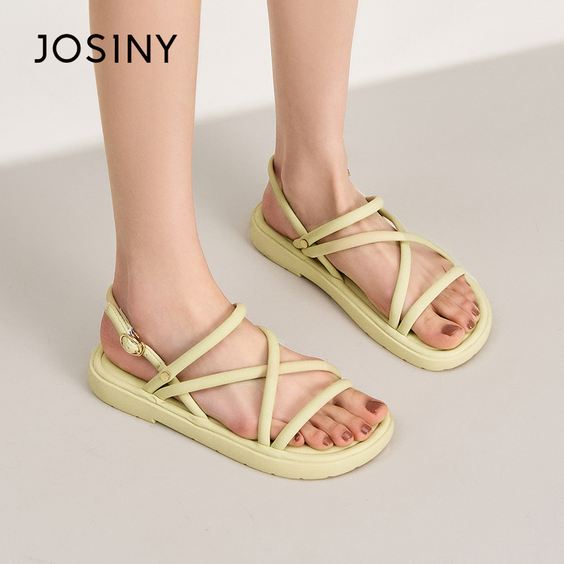 卓诗尼罗马凉鞋女鞋新款夏季凉鞋女时尚细跟方头一字带露趾凉鞋