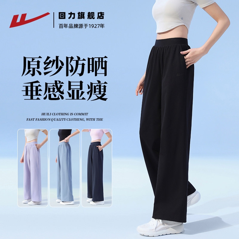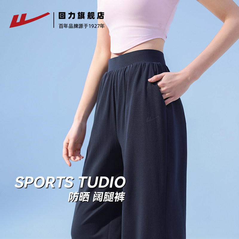 回力运动裤女夏季薄款2026新款防晒阔腿裤速干冰丝裤直筒休闲长裤