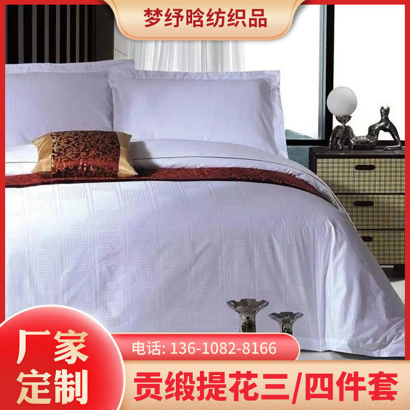 批发五星级四件套布草宾馆民宿床上用品60贡缎提花酒店床单被套罩